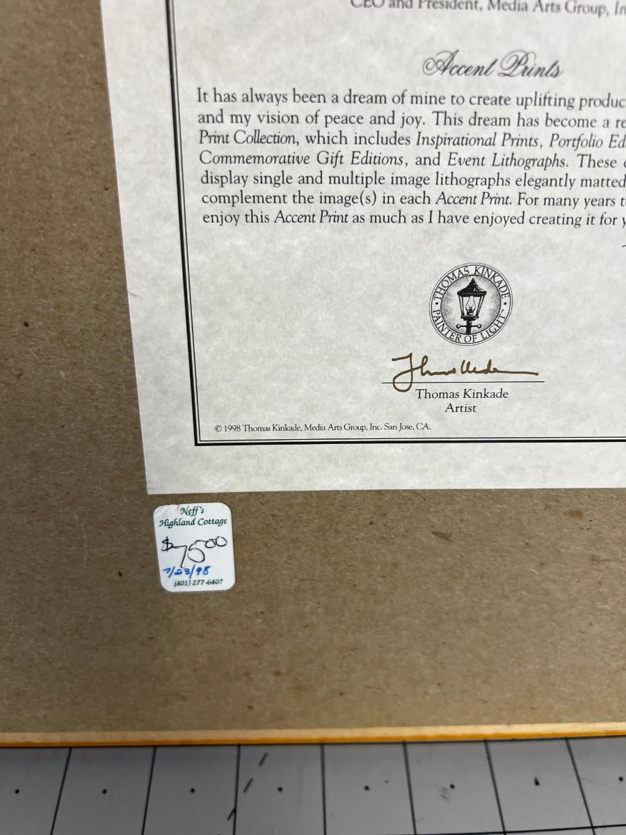 Thomas Kinkade Picture "Chandlers Cottage " COY included.  Print Framed. Lovely
