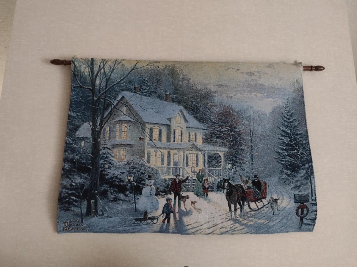 Thomas Kinkade Tapestry Wall Art with Hanging Rod- Approx 24 1/2" x 35 1/2"