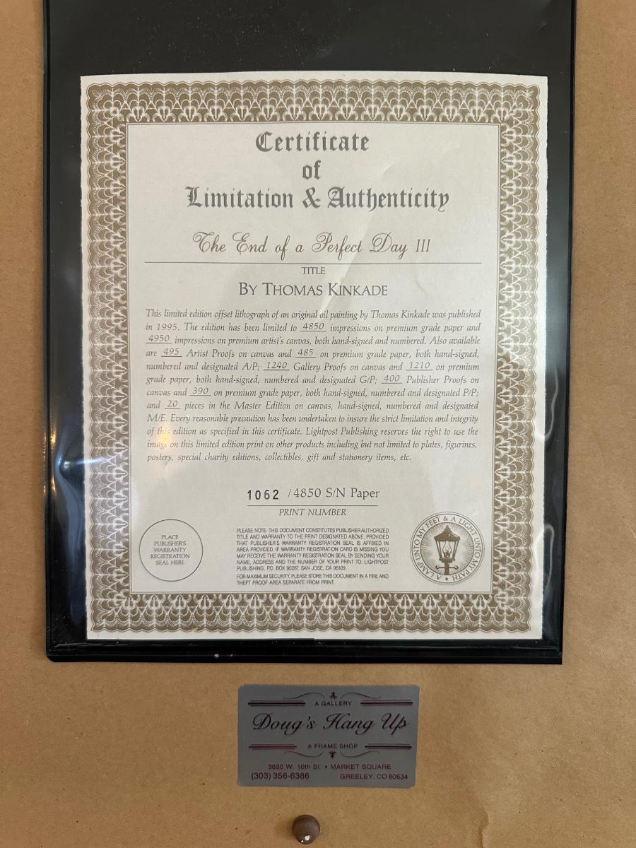 THOMAS KINKADE "THE END OF A PERFECT DAY III" W/COA