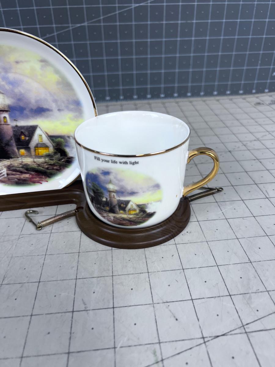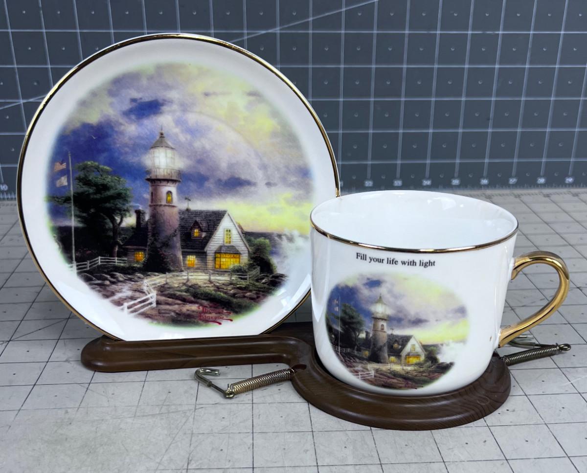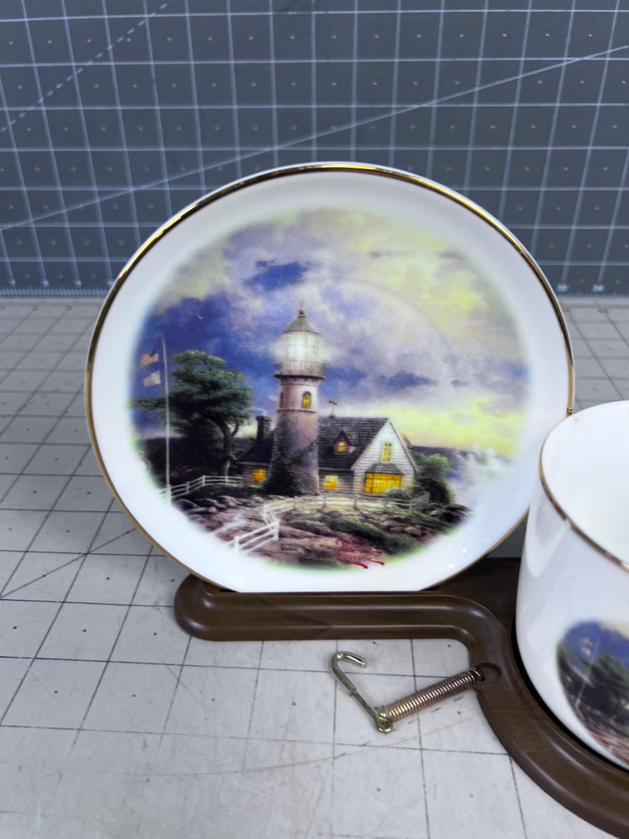Thomas Kinkaid Light in the Storm Plate and Cup with Stand