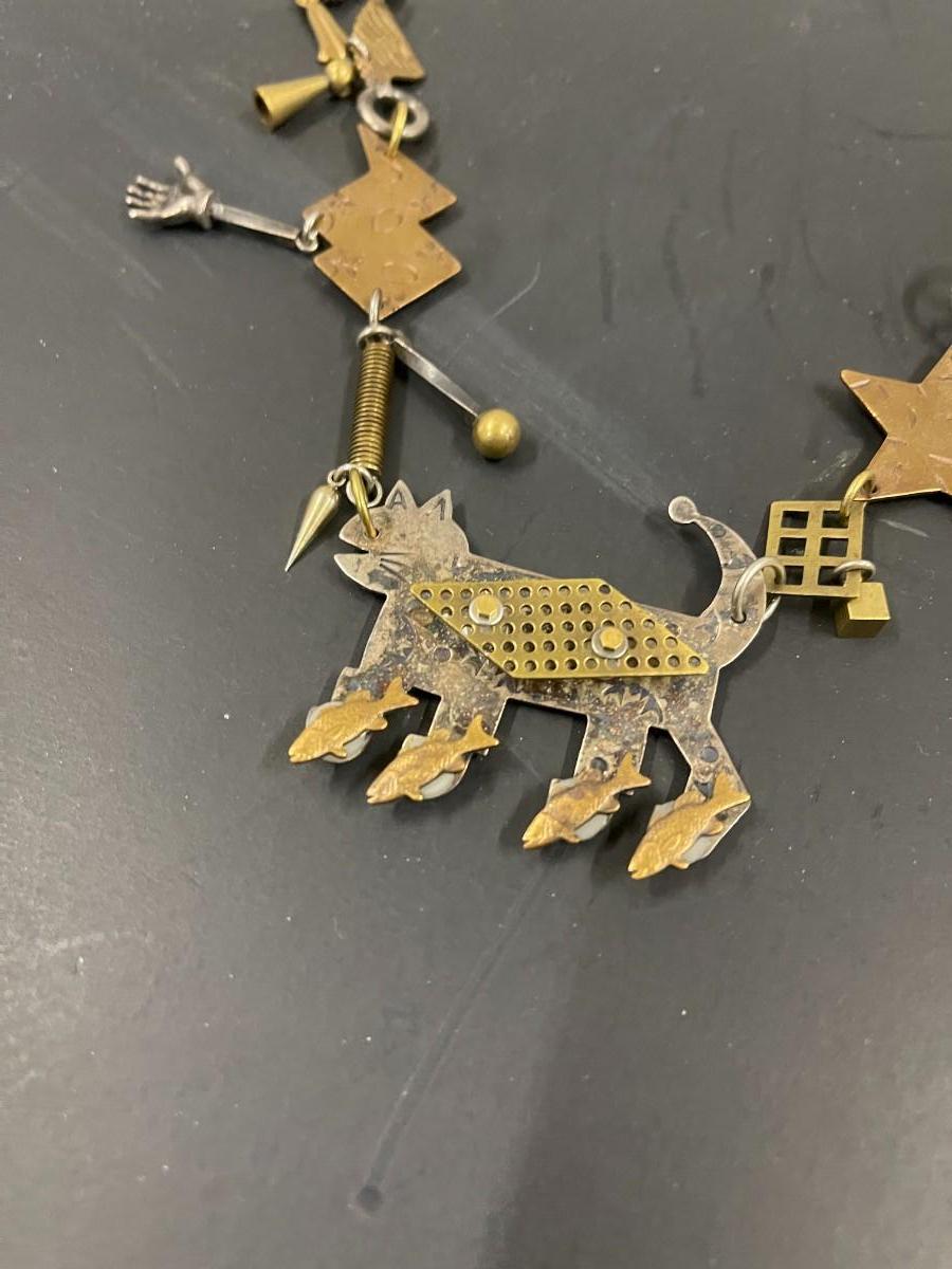 Thomas Mann Sterling Silver Bronze Techno Kinetic Cat Fetish Necklace. Resale on these pieces is around $250