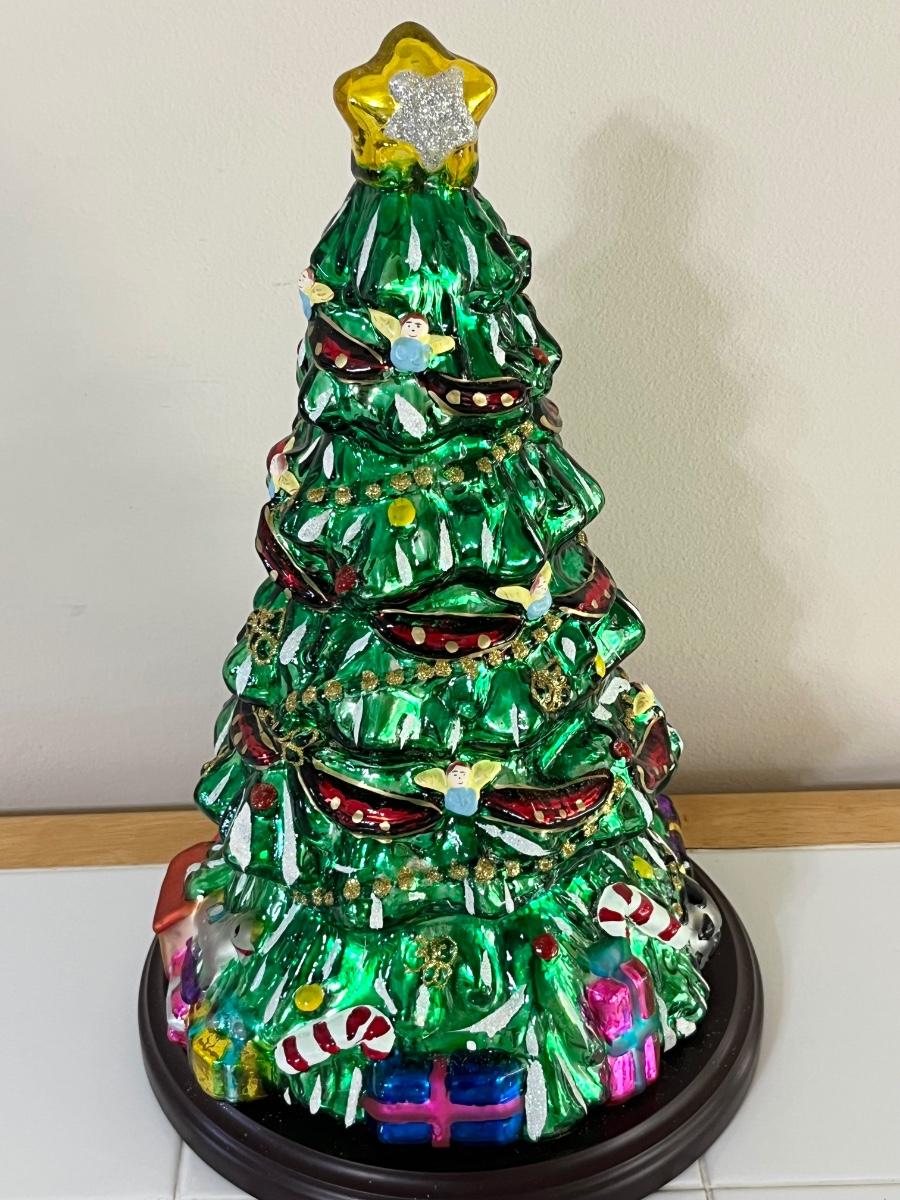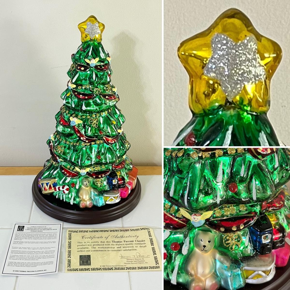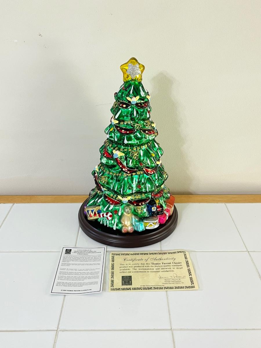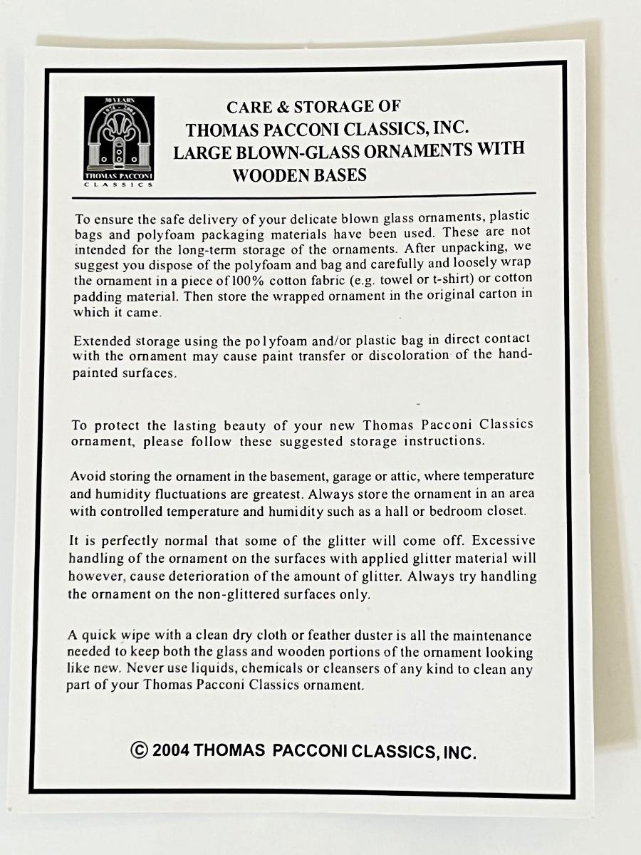 THOMAS PACCONI CLASSICS INC. ~ Large Blown Glass Ornament With Wooden Base
