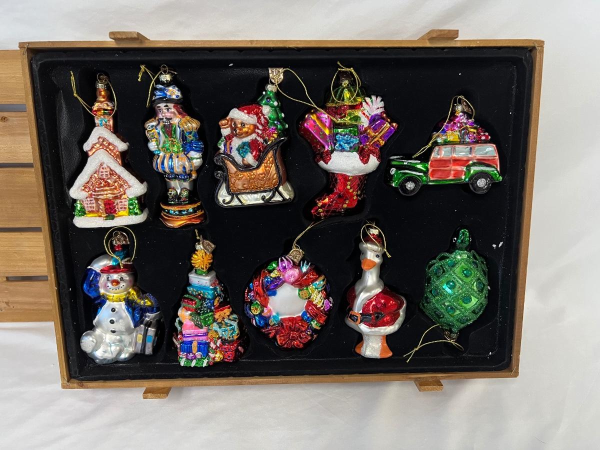 Possibly NOS. Twelve ornaments in original box and crate. Includes COA. Shipping dimensions: 19" x 15" x 6". [ST]