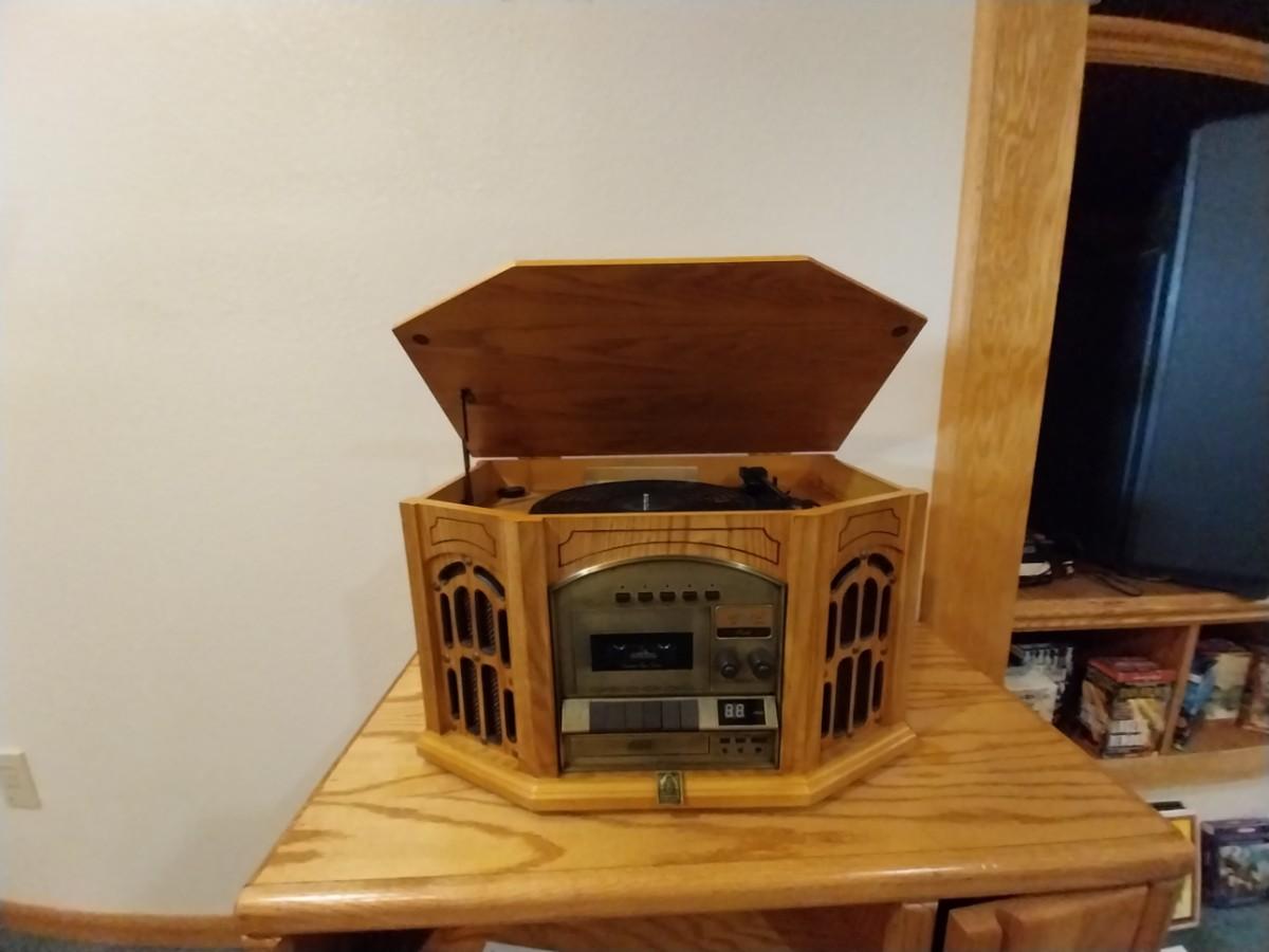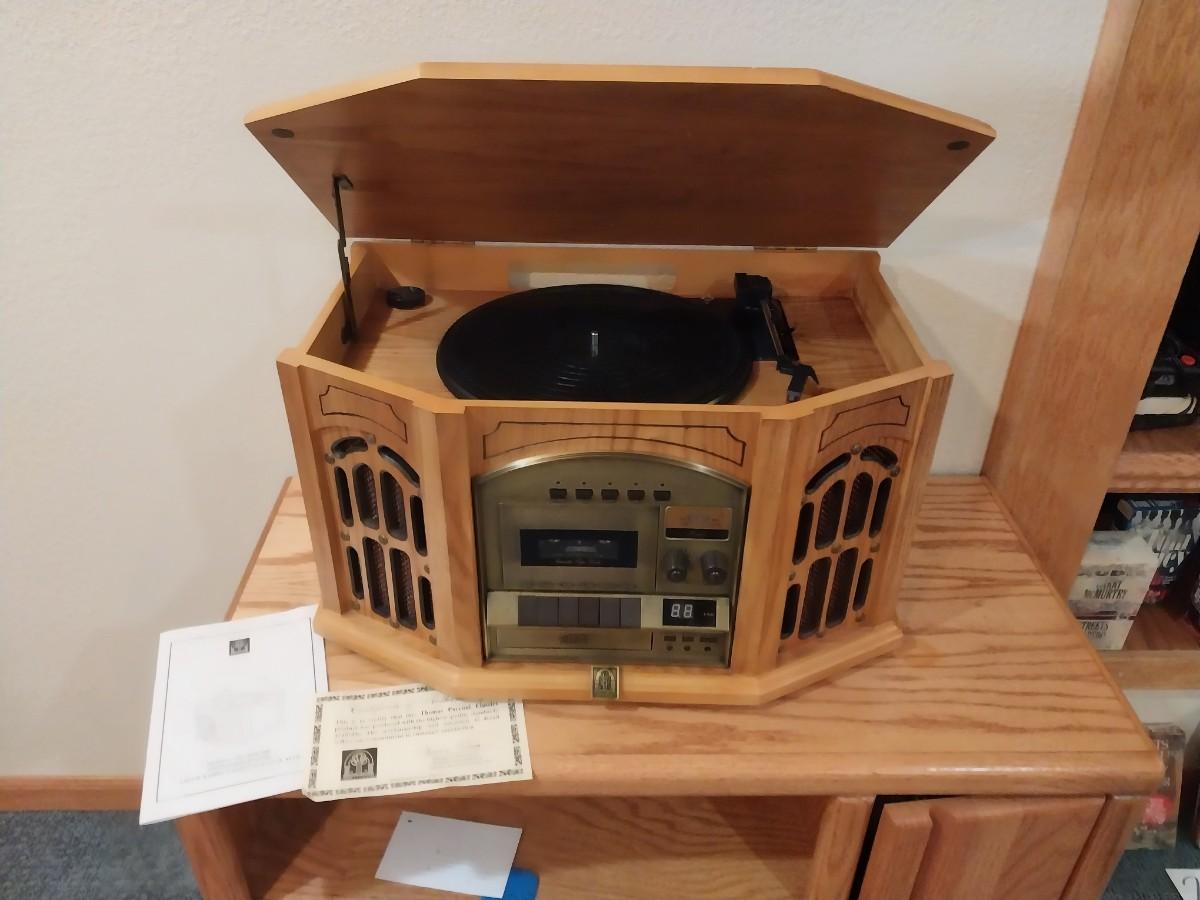 THOMAS PACCONI PHONOGRAPH WITH AM/FM STEREO CASSETTE AND CD PLAYER