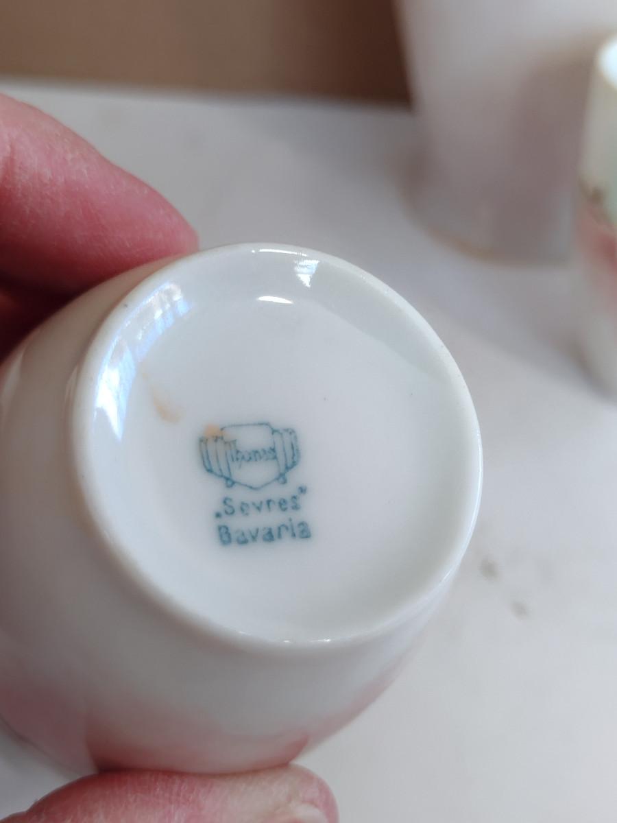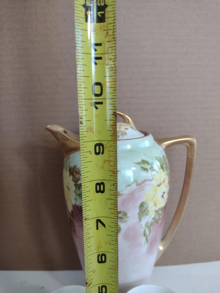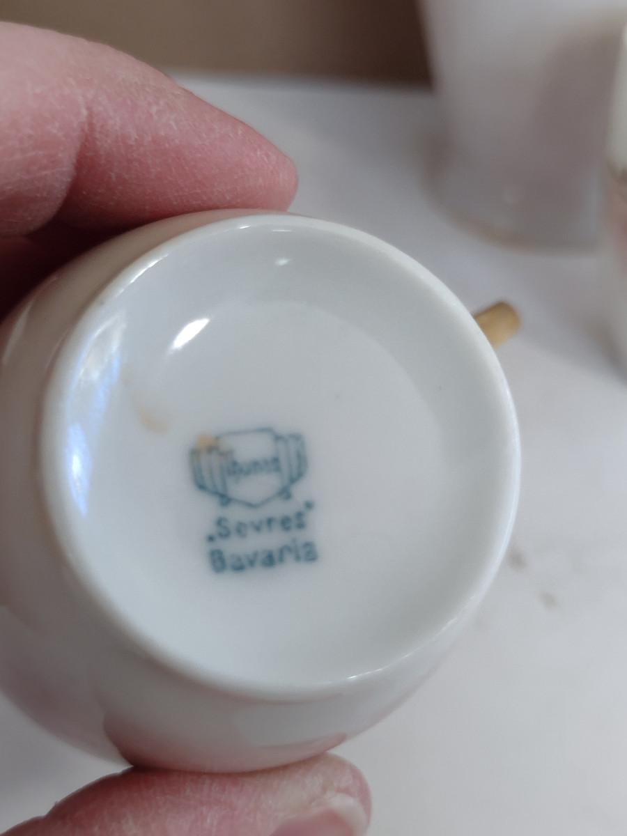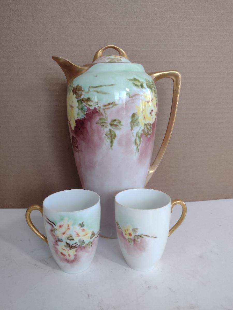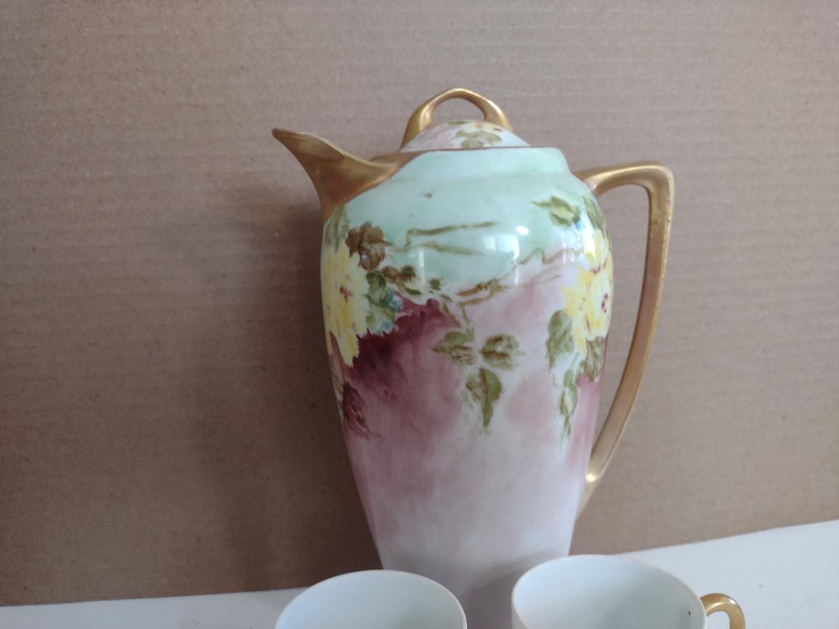 Thomas Sevres Bavaria Chocolate Pot with Two Cups. Pot has small chip on spout and missing paint on rim- please see all pictures for condition.
