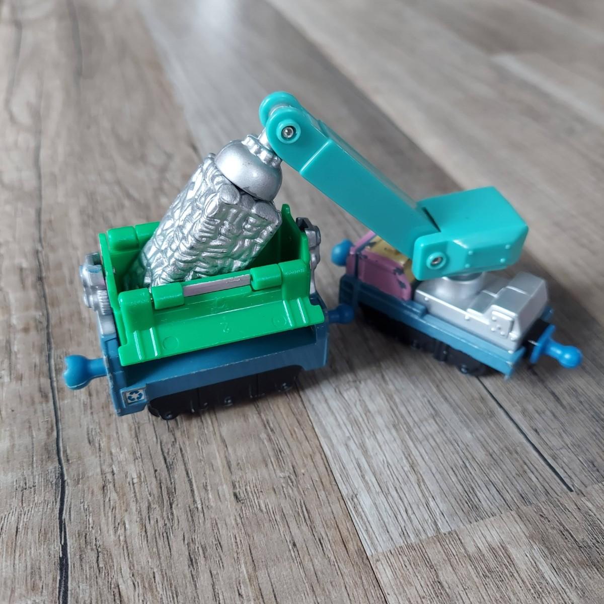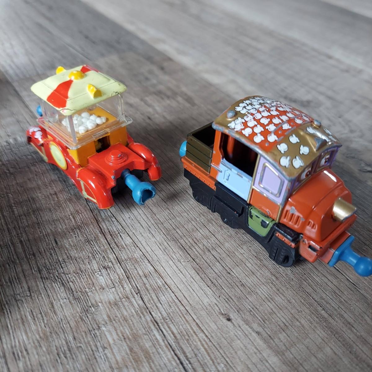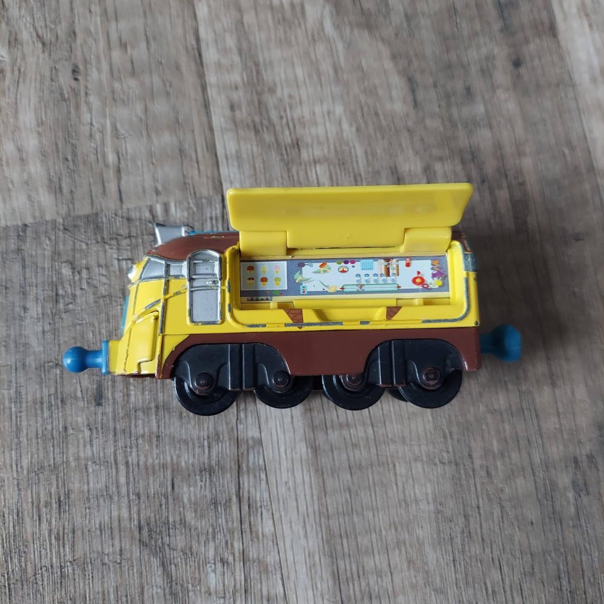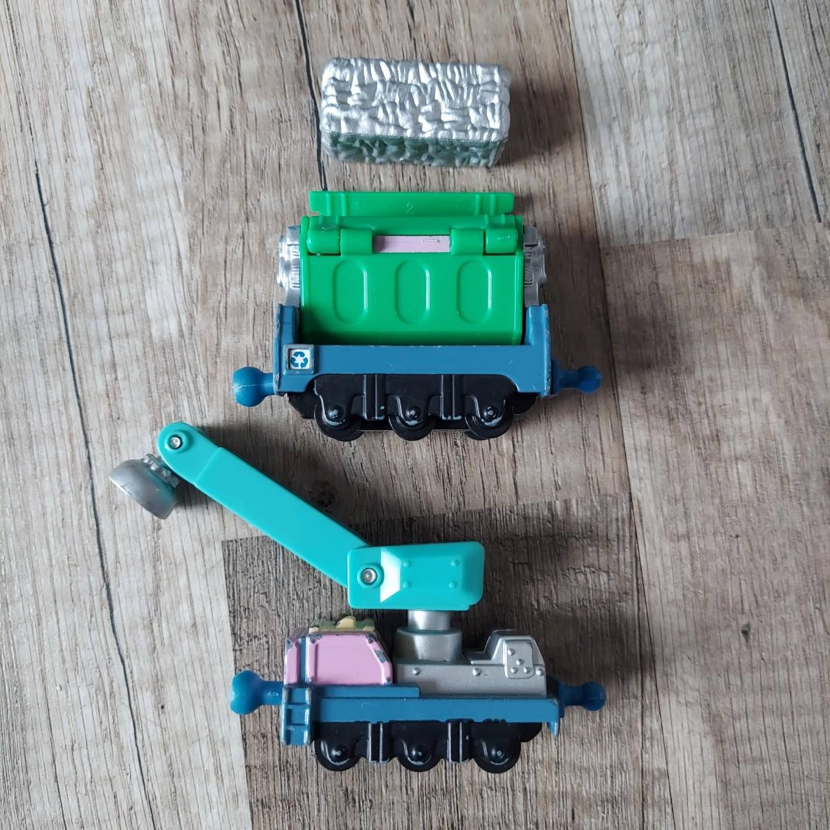 Thomas the Tank Engine Diecast Train Set. Three magnetic train cars with removable accessories. Thomas the Train and two Thomas and Friends trains including Thomas 2002, Percy 2002 and Belle 2010. Also includes Learning Curve Chuggington Die-cast Trains. Six engines including Frostini, Old Puffer Pete, Action Chugger, Hodge, Irving and Calley with six interchangeable train cars. Some chipping paint. Each train piece is approximately 3-4" in length. Please see photos for details. Shipping available.