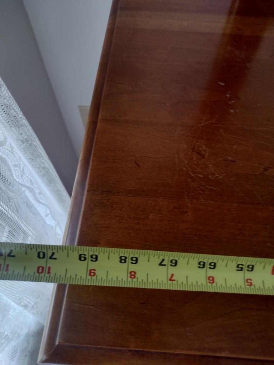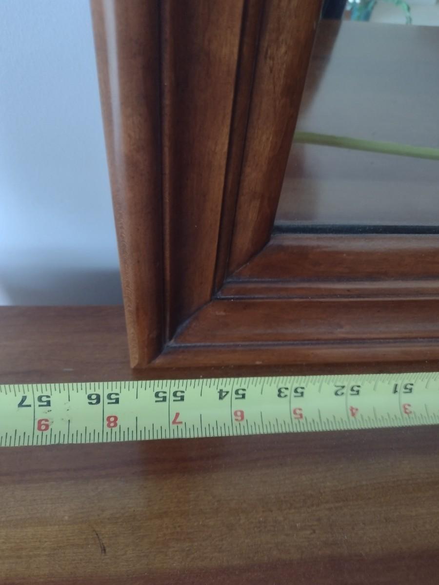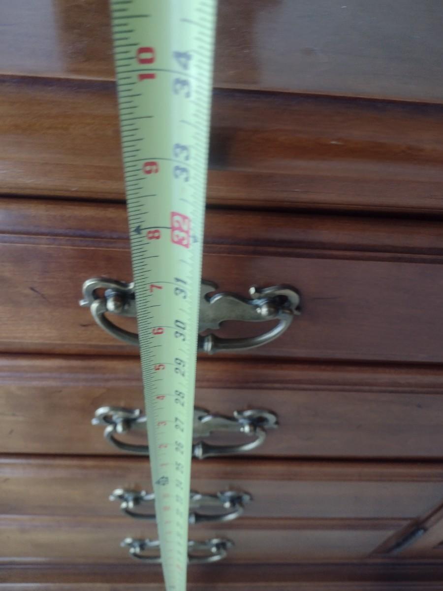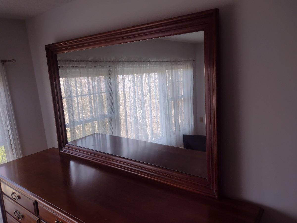Thomasville Cherry Finish 9 Drawer Stretch Dresser with Sweater Drawers and Mirror. This is an upstairs item. Please bring assistance to remove safely downstairs.