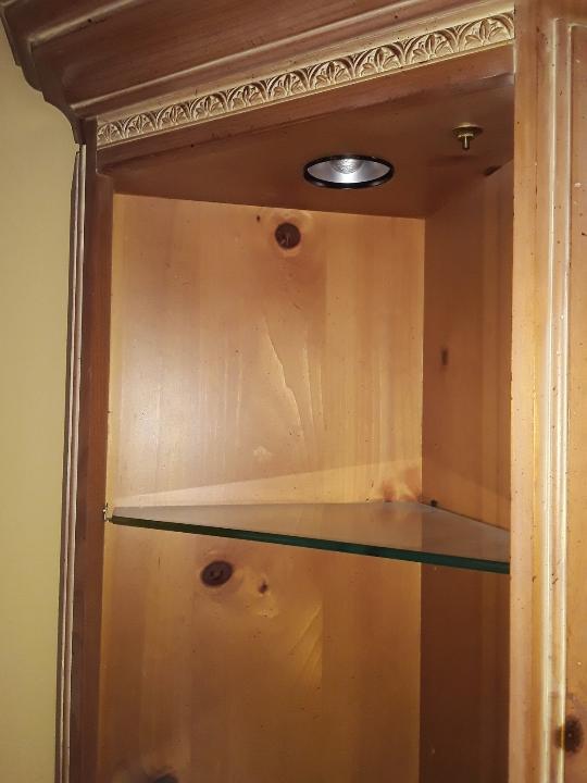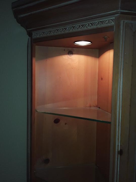 Corner unit with light, drawer and shelves. 16 x 16 x 78.