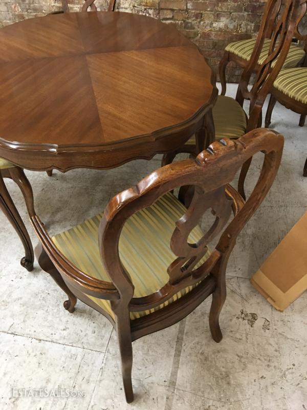 Thomasville Dining Table, 6 Chairs, 2 Leaves French Provencal Style