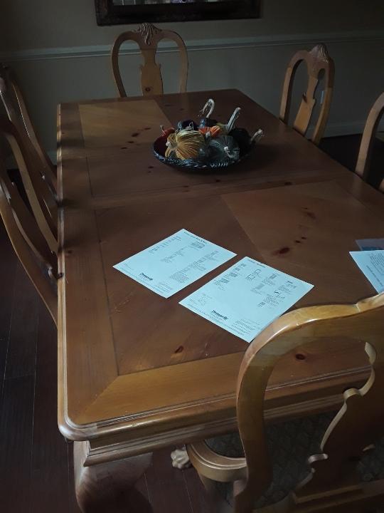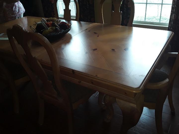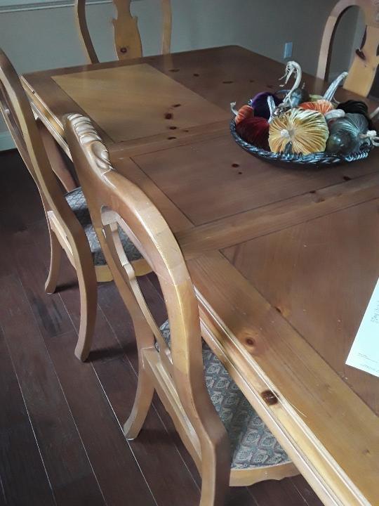 Dining room table with 6 chairs and 1 leaf. Excellent condition.
