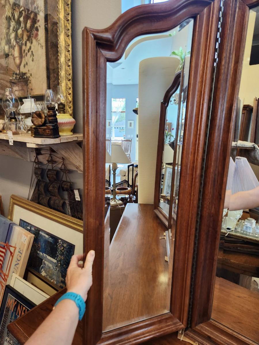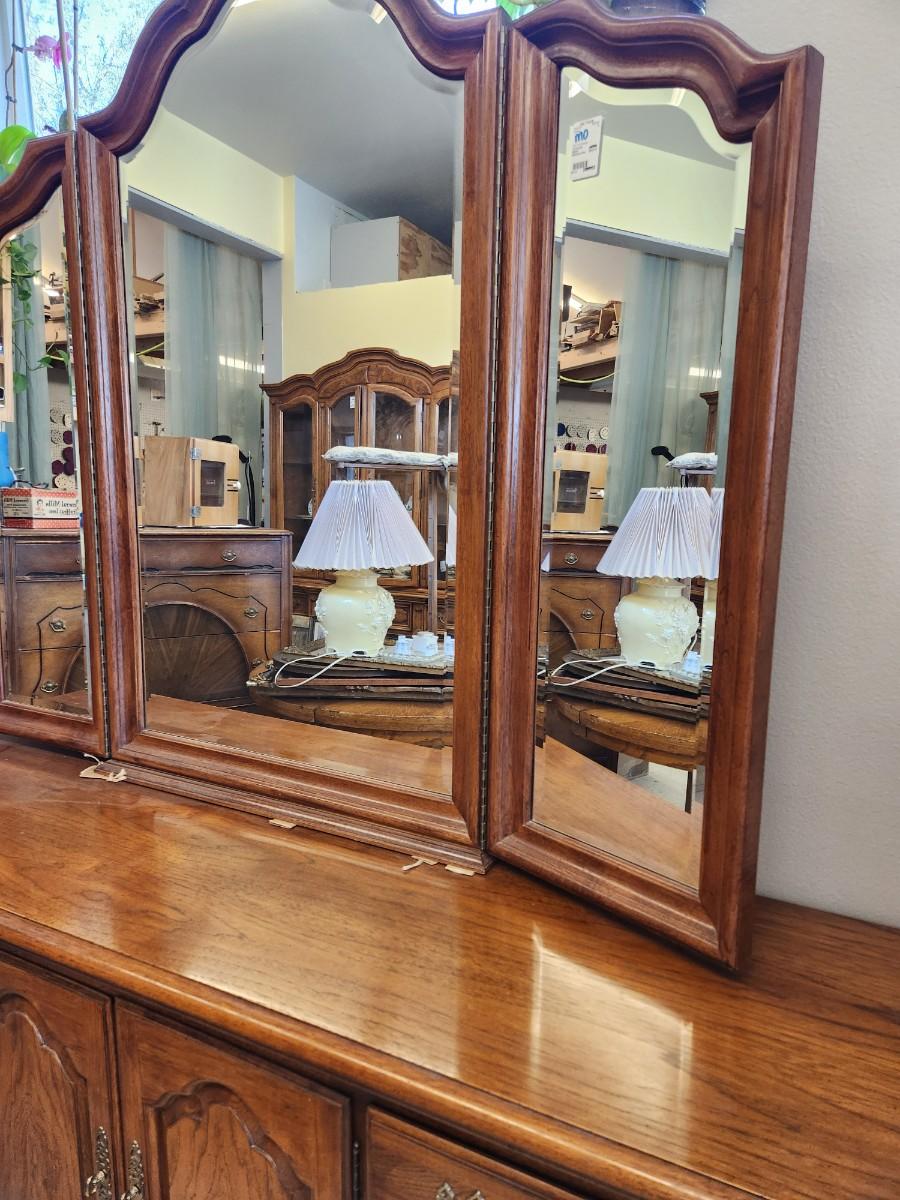 Large Thomasville dresser with separate trifold beveled mirror. Please bring help to load. On the floor at Aal Yours Consignments and Refinishing - 615 9th Ave S Fargo