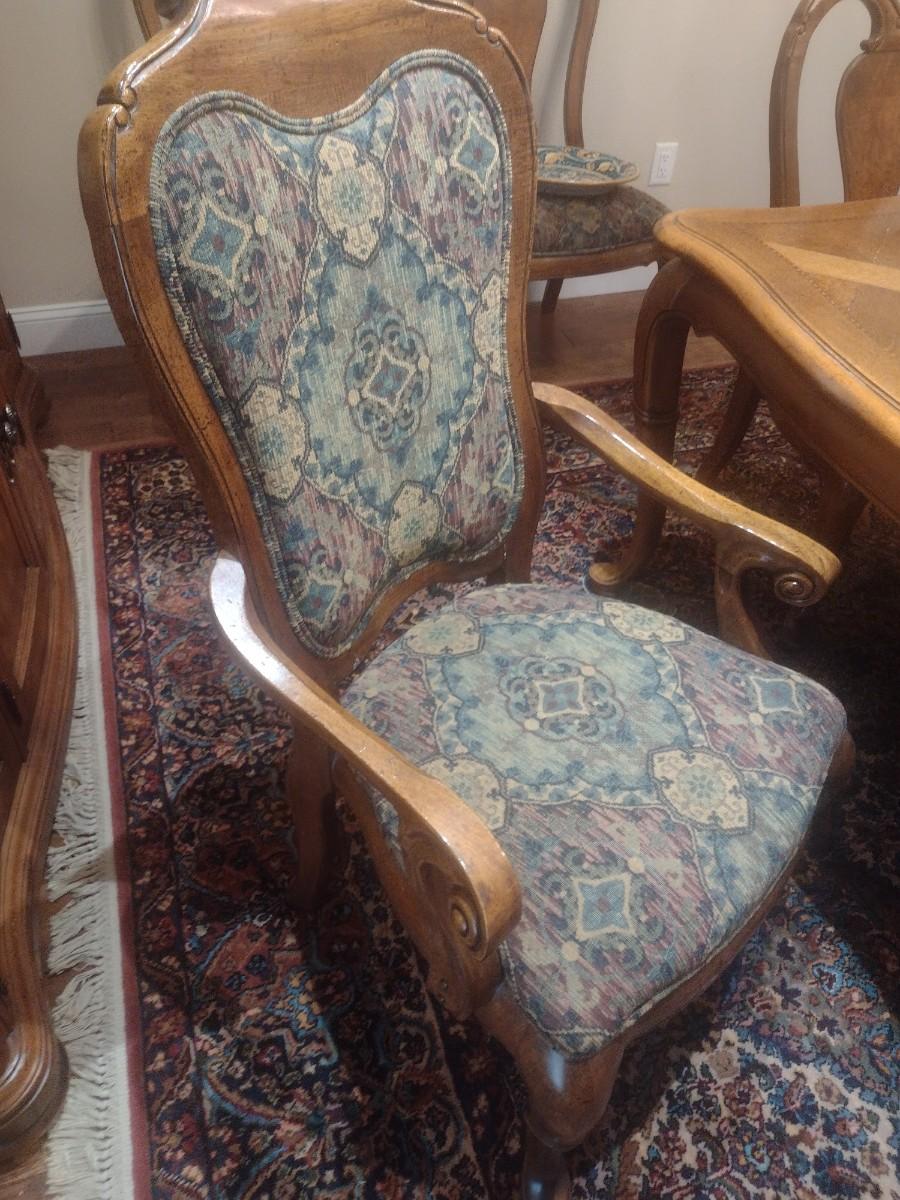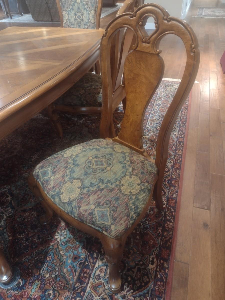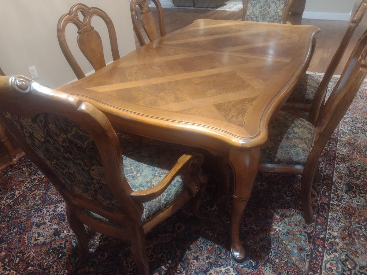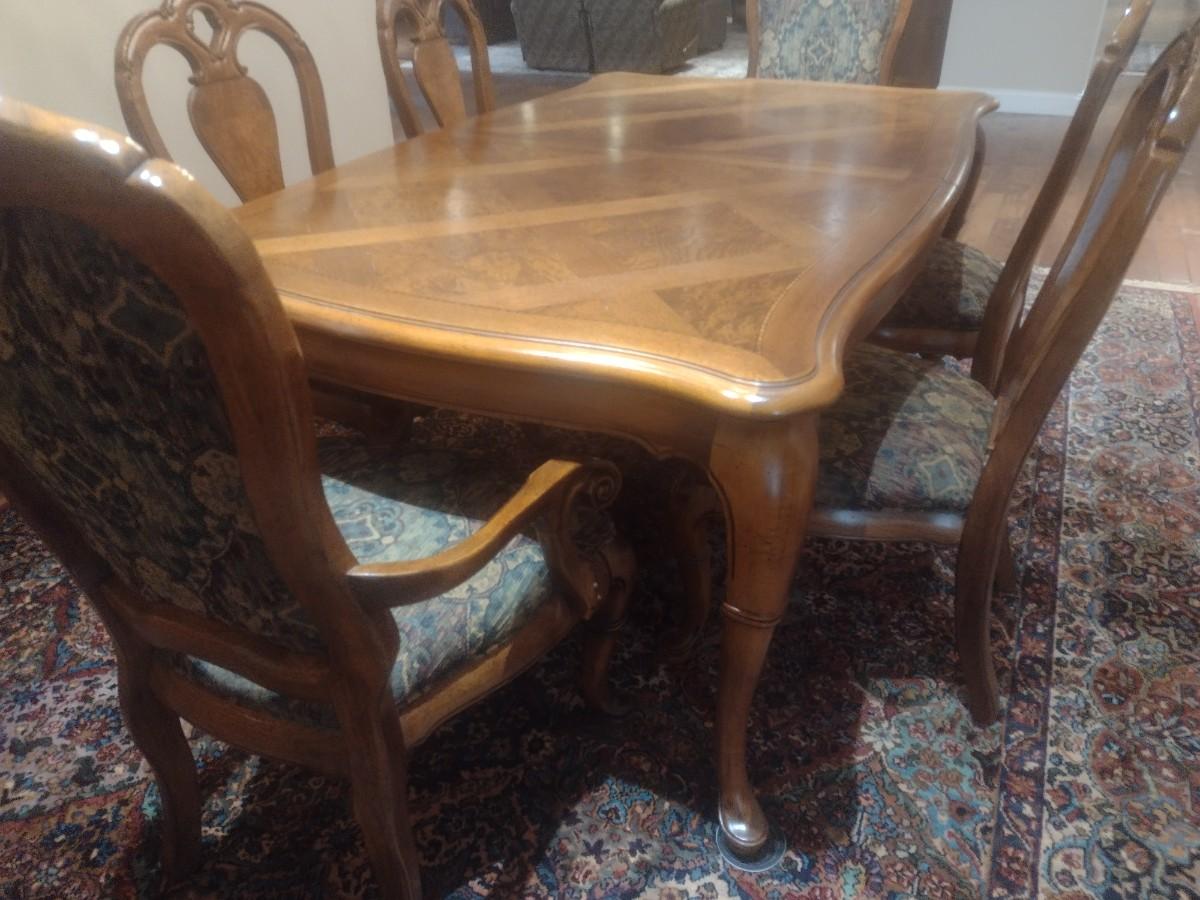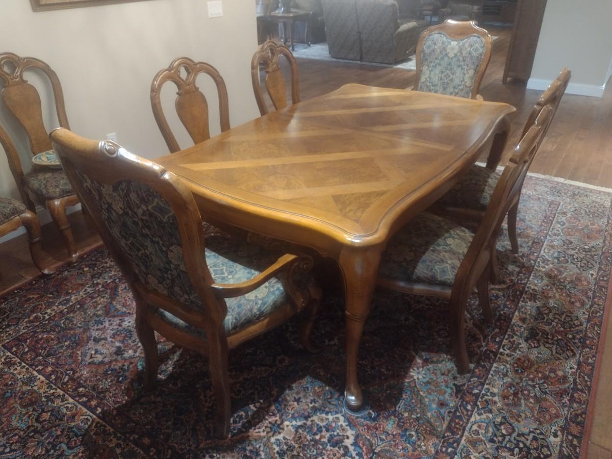 Thomasville Formal Dining Table with Eight Chairs and Table Protector With 2 Leaves