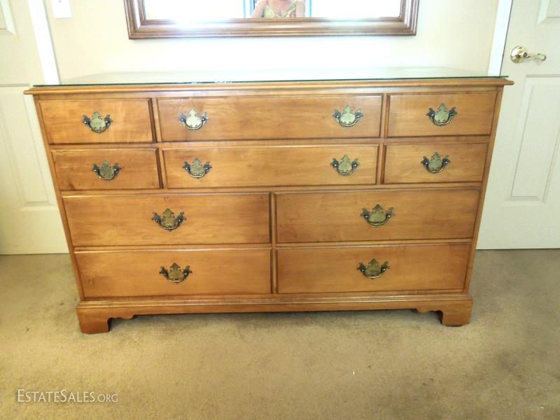 Thomasville Maple 10 Drawer Dresser with Mirror