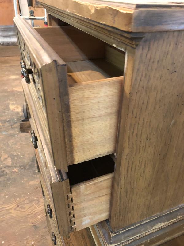 Shows some wear. matches dresser and headboard in auction.