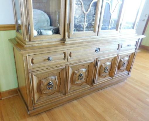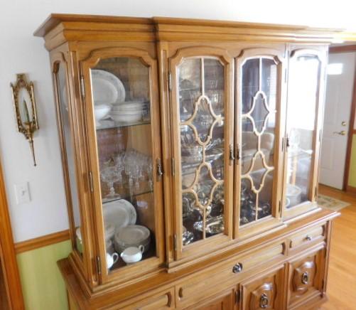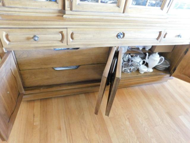Thomasville Pecan Wood 2-Piece Breakfront China Hutch 74" x 20" x 81"