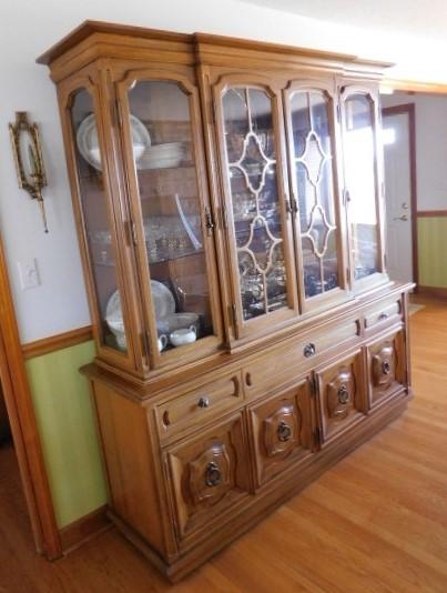 Thomasville Pecan Wood 2-Piece Breakfront China Hutch 74" x 20" x 81"..No contents