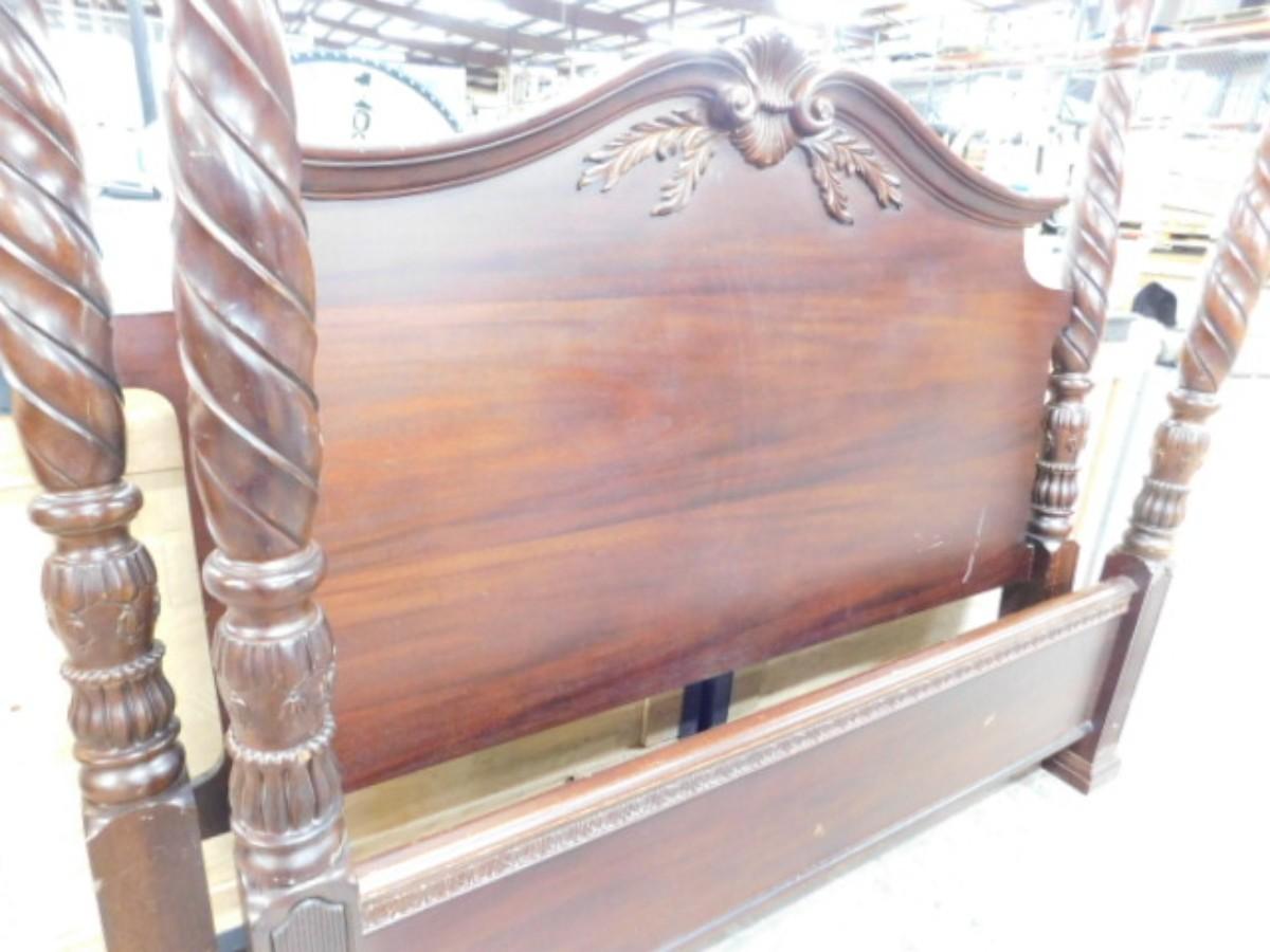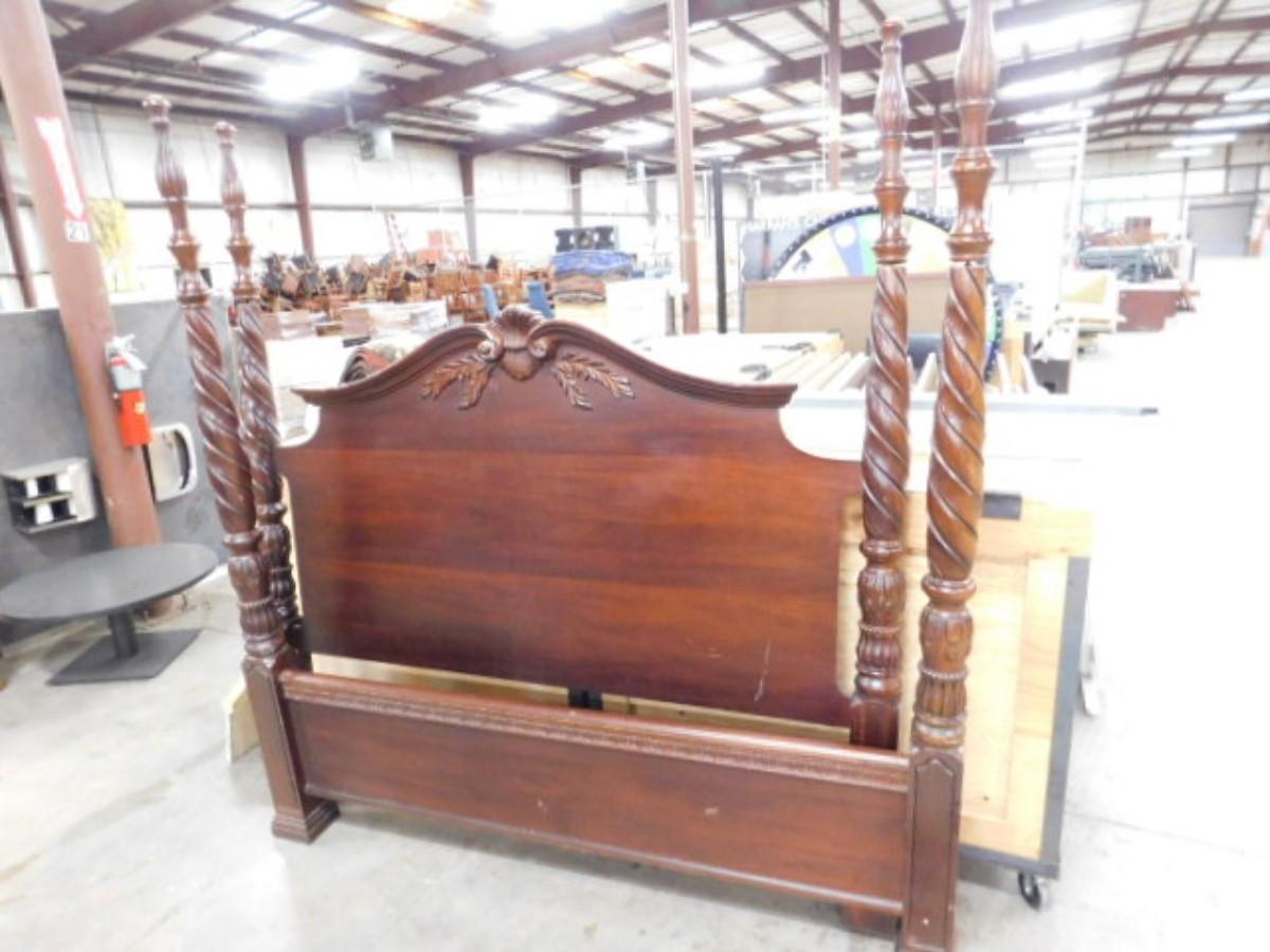 Thomasville Regency Design Mahogany Finish Four Post King Sized Bed Frame Choice A Expect some wear or scratches to the finish. Shipping option available via freight or local mover at Buyer's expense. Buyer must have all shipping scheduled within the stated dates and times of pickup. Recommended local mover is Beaty Bros. Moving 828-201-2982