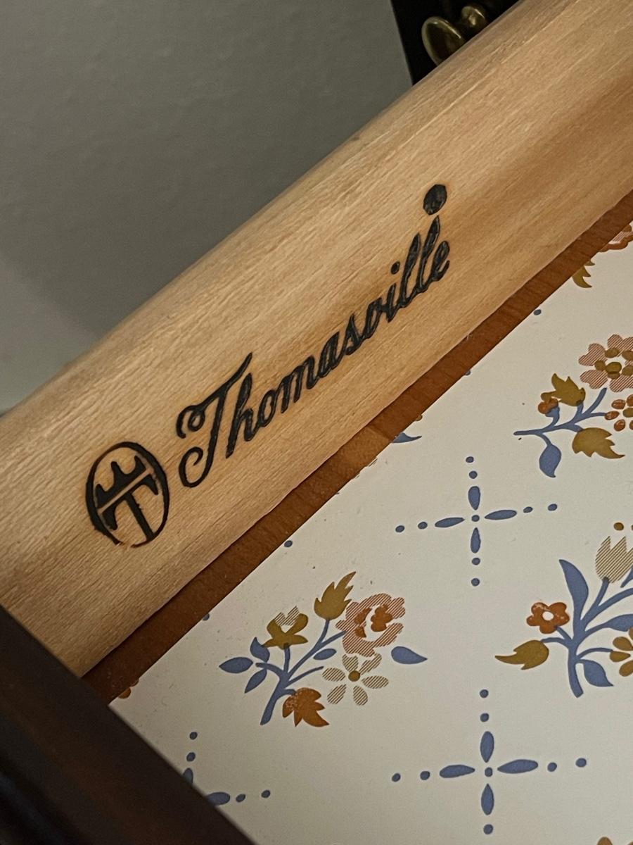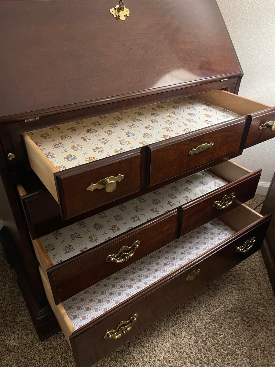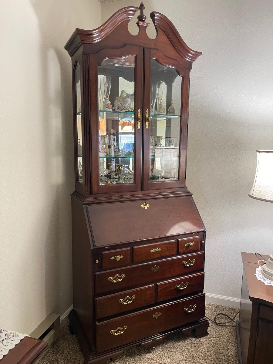 Elegant Thomasville secretary desk with an upper glass display hutch