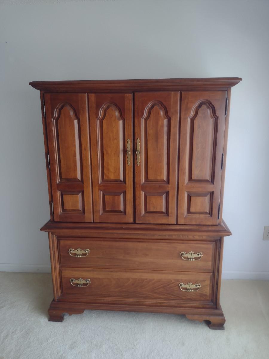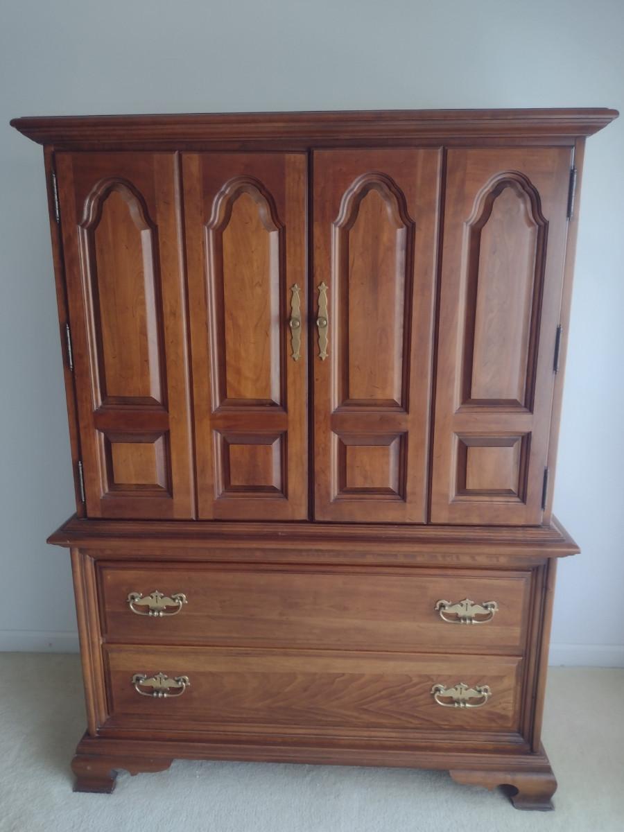Thomasville Solid Wood Cherry Finish Armoire. This is an upstairs item. Please bring assistance to safely remove.