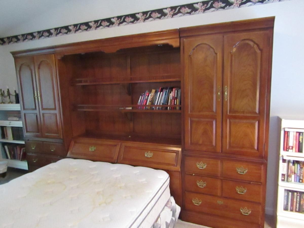 Thomasville Solid Wood Headboard with Storage and Queen Size Bed
