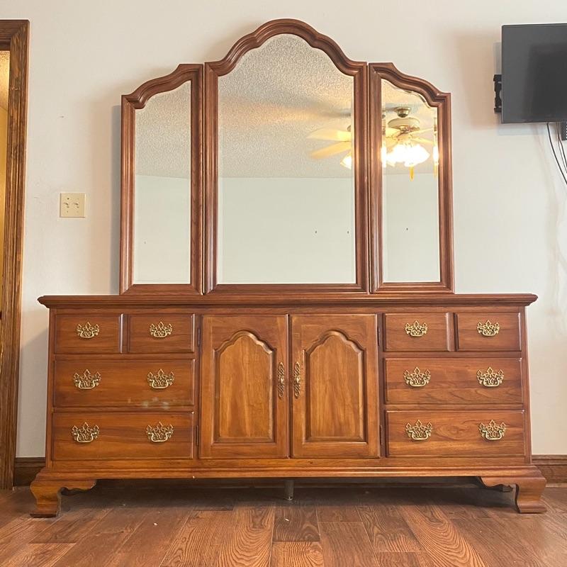 Thomasville Wood Dresser with Tri Fold Folding Mirrors