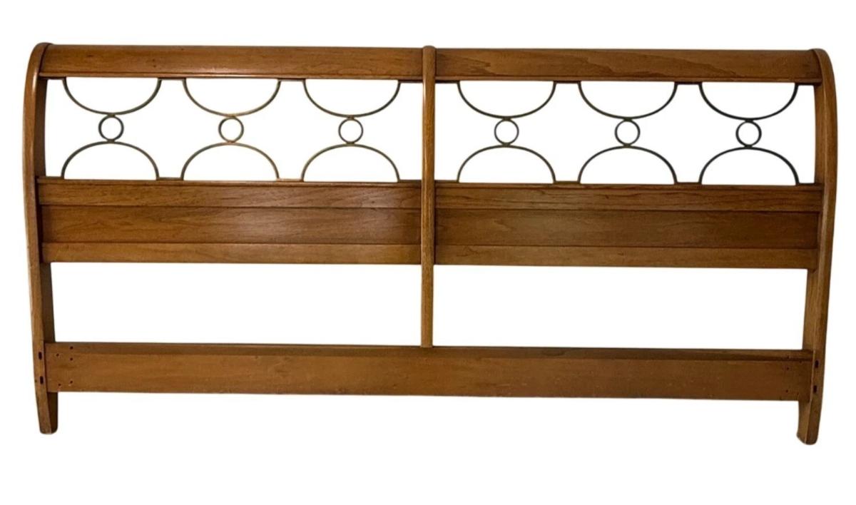 Vintage Thomlinson Mid Century Modern King Size Wood & Metal Inset Headboard 78" x 2" x 39.5"