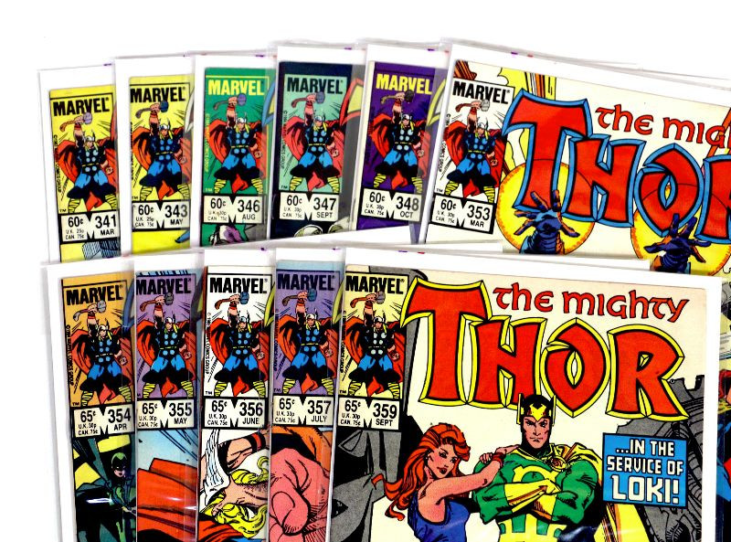THOR #341 343 346 347 348 353 354 355 356 357 359 Lot Marvel Comics 1983-85