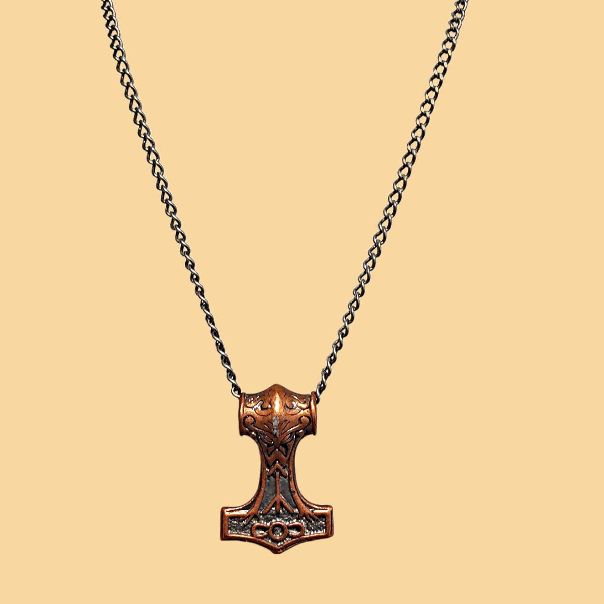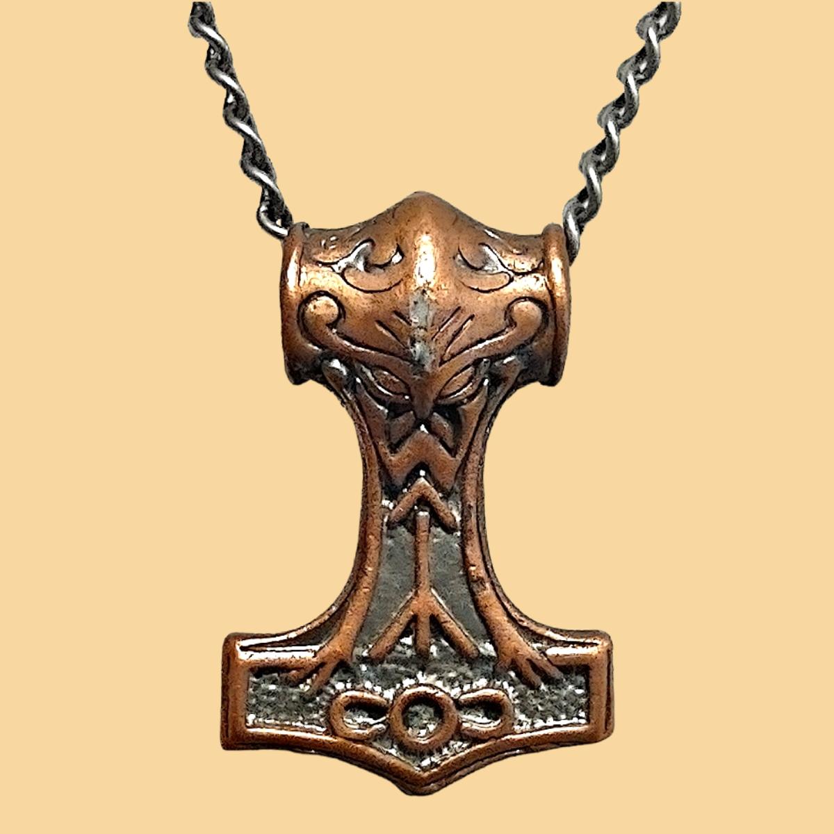 20" Stainless Steel Chain & Bronze Thor's Hammer Pendant