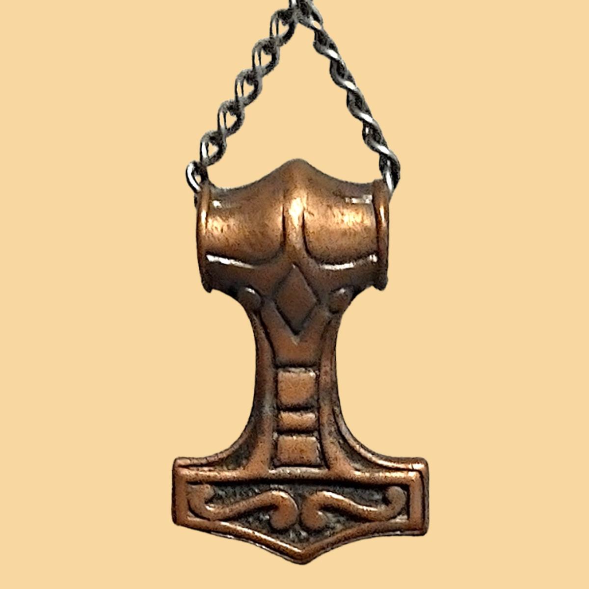 20" Stainless Steel Chain & Bronze Thor's Hammer Pendant