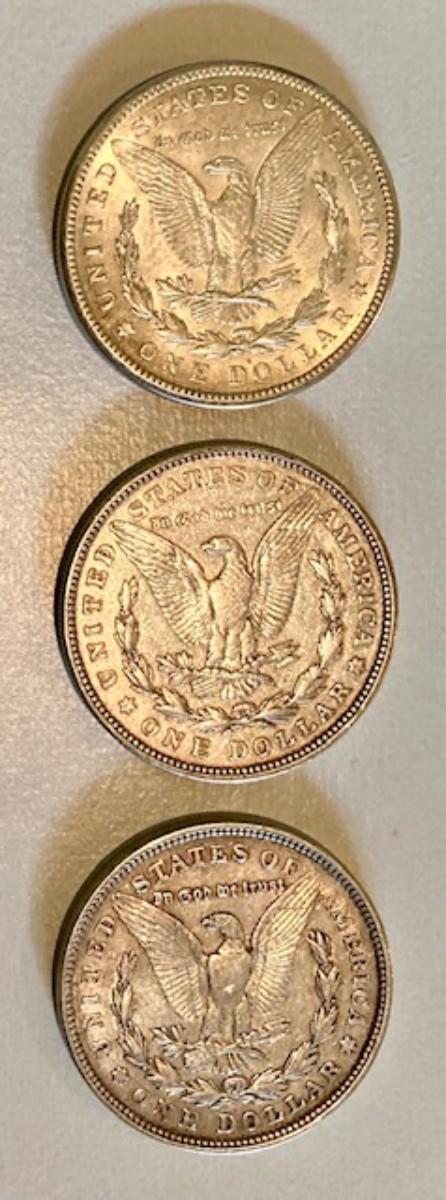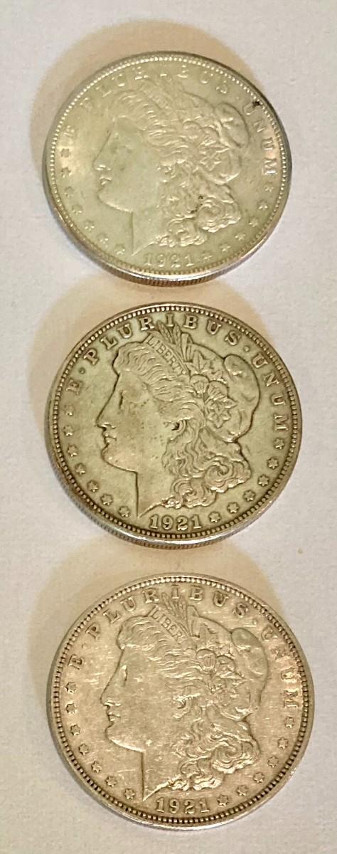 Three 1921 Morgan Silver Dollars