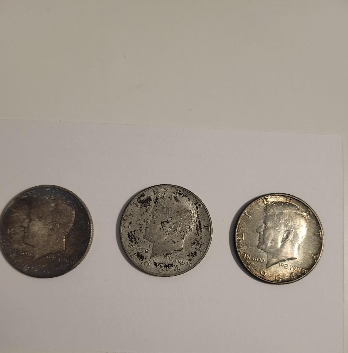 THREE 1964 KENNEDY SILVER HALF DOLLARS