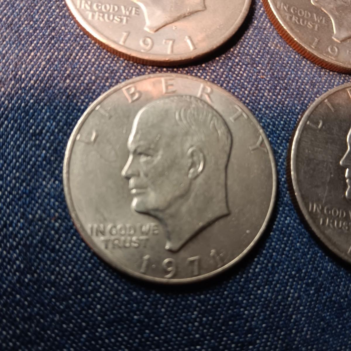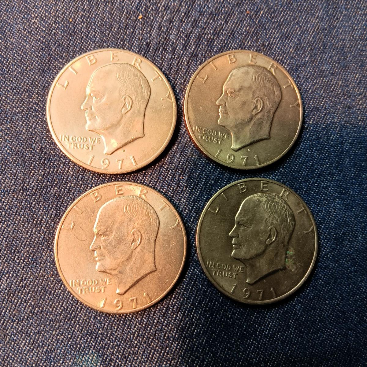 THREE 1971-D & 1 W/NO MINT MARK EISENHOWER DOLLARS