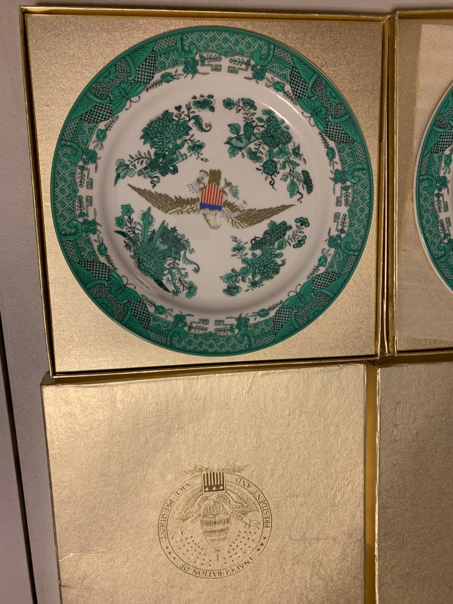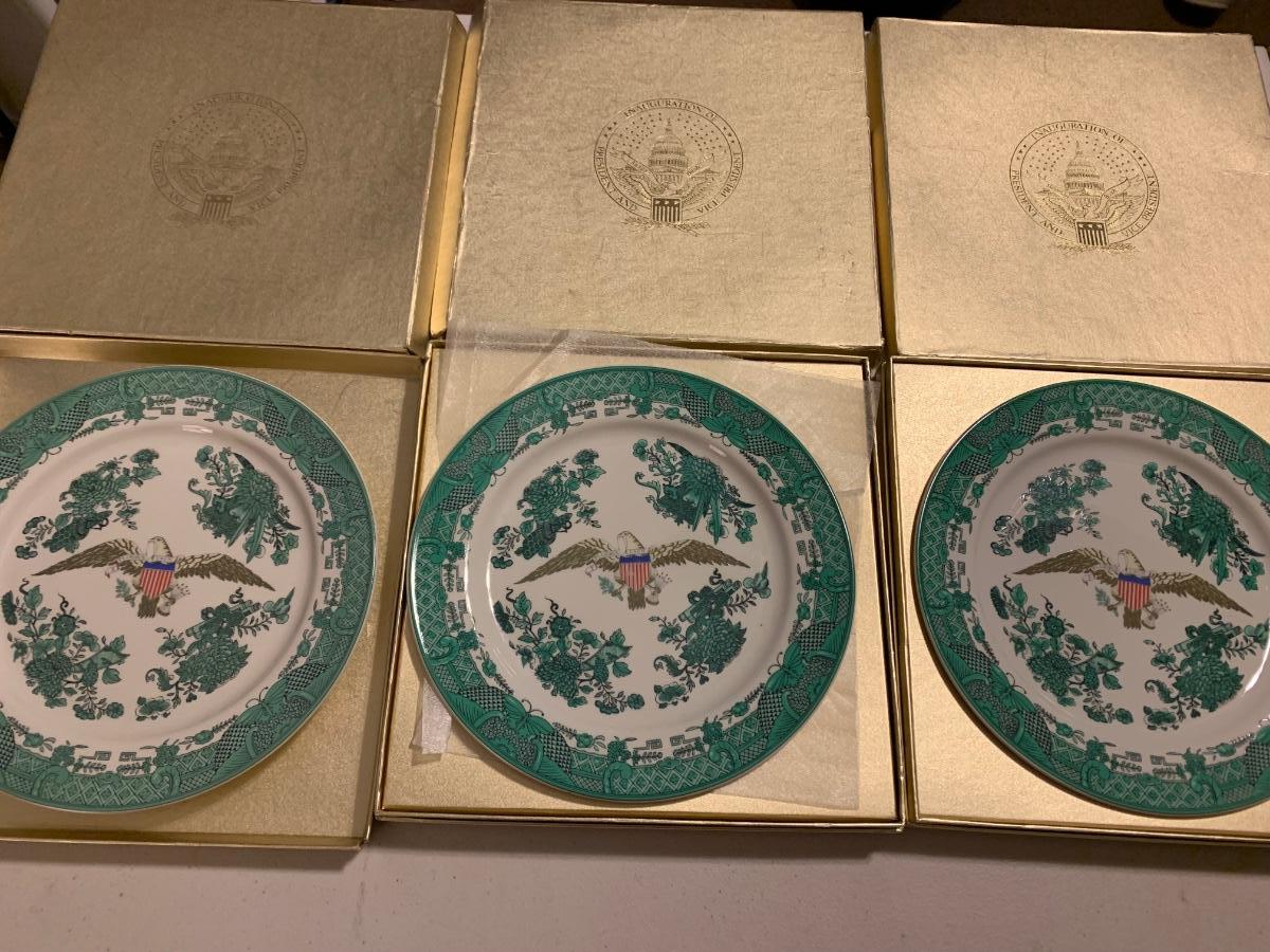 THREE 1981 Mottahedeh Inauguration Dinner Plates W/ orig boxes.