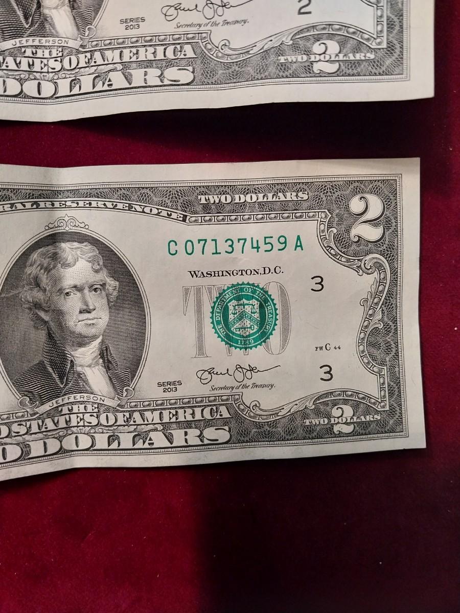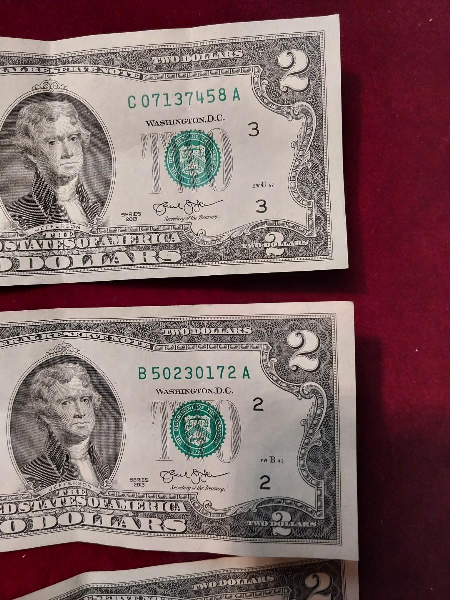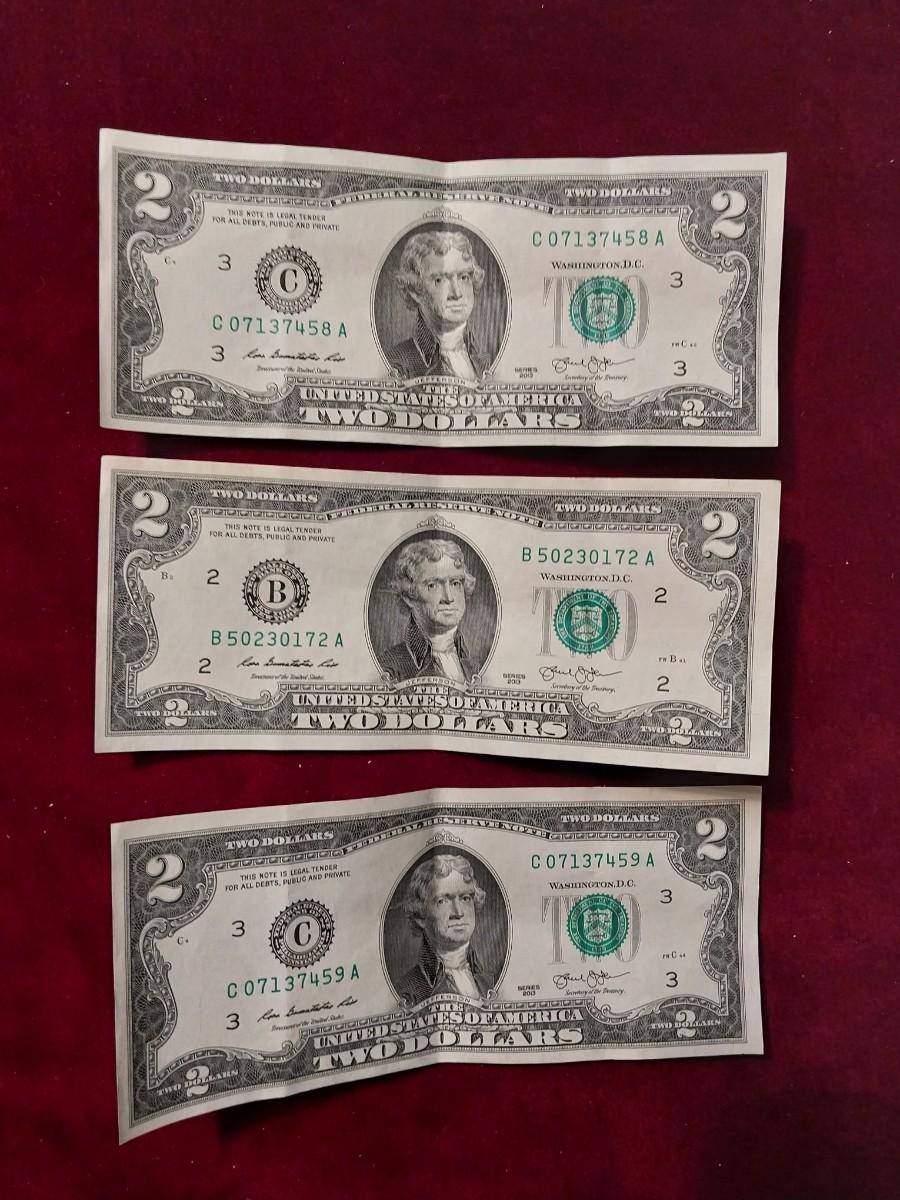 THREE 2 DOLLAR BILLS ALL ARE 2013