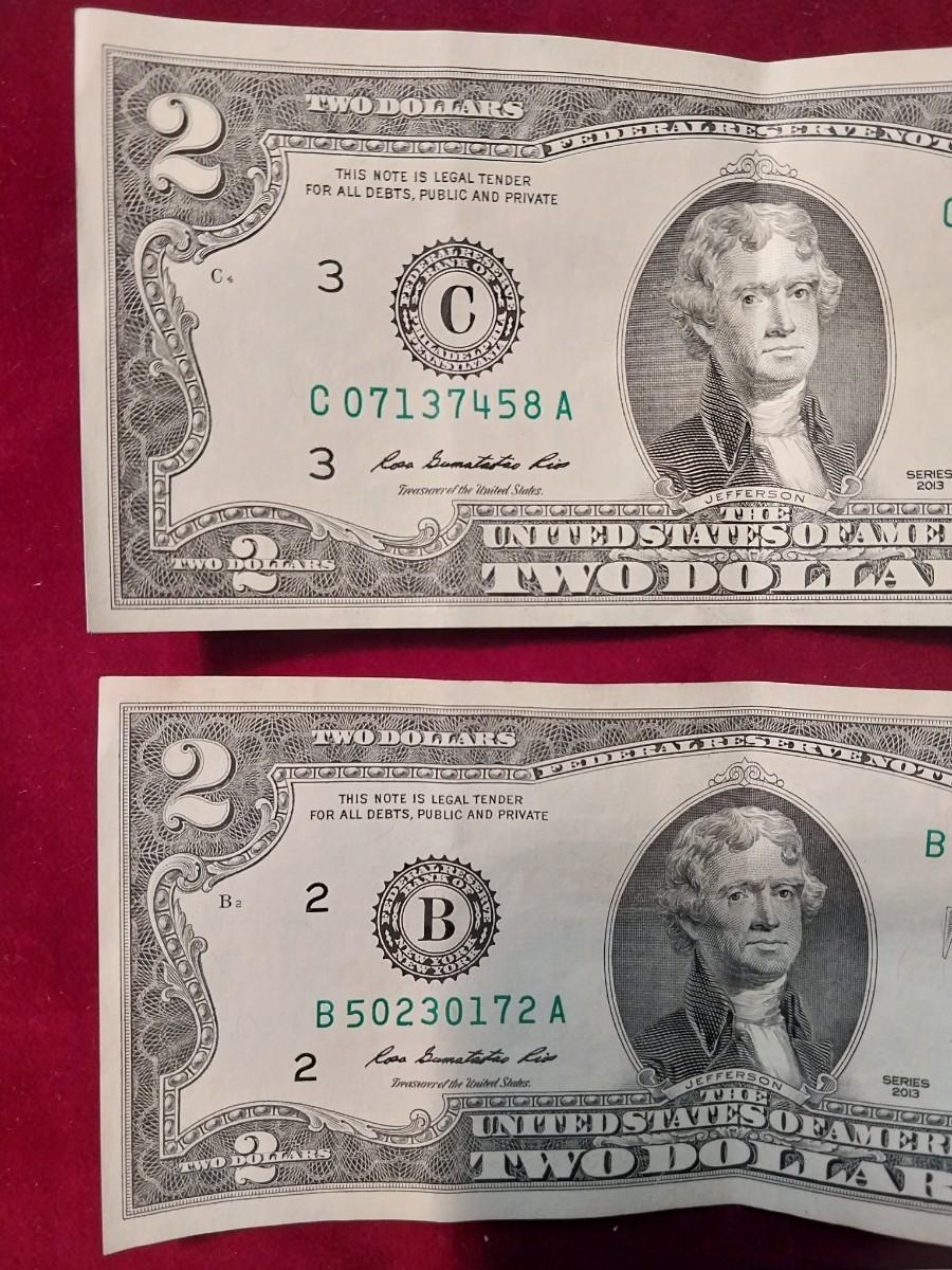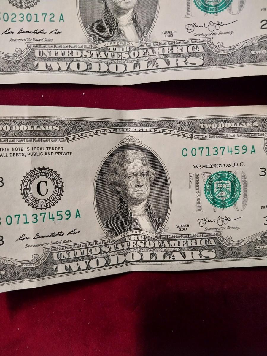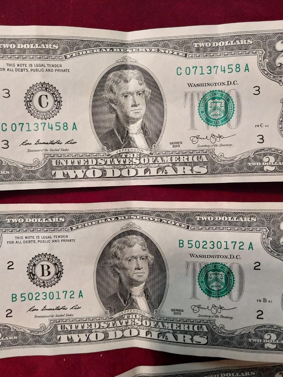 THREE 2 DOLLAR BILLS ALL ARE 2013