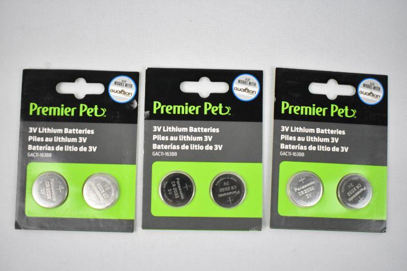 Three 2-Packs of Premier Pet 3V Lithim Batteries GAC11-16388 CR-2032 - New