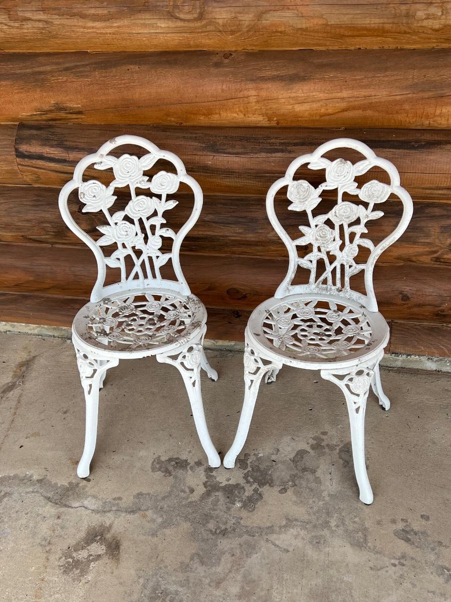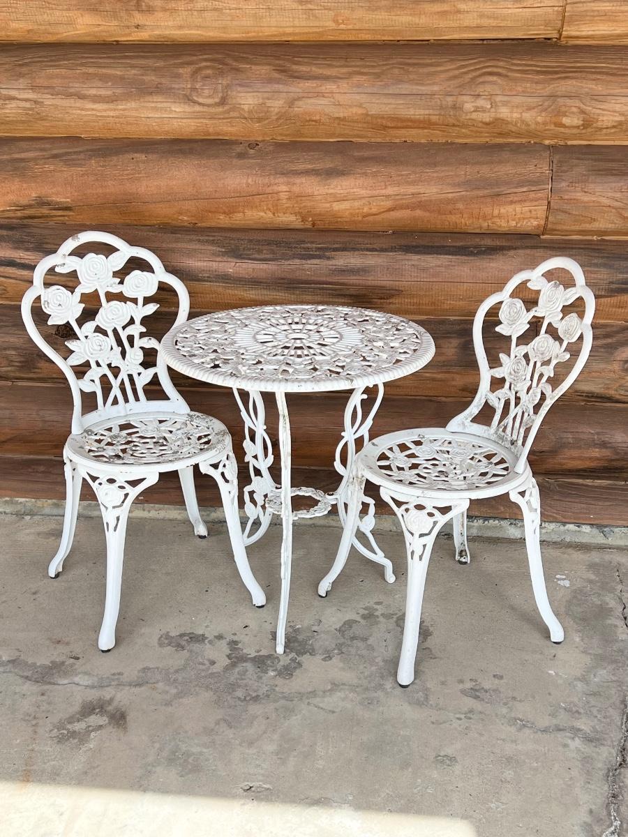Three (3) Piece Cast Iron Rose Table & Chairs Bistro Set