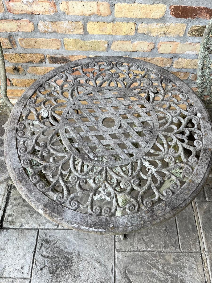 Needs additional cleaning ~ outdoor kept ~ Medium Weight ~ Table 26.5” H x 25.5” W ~
