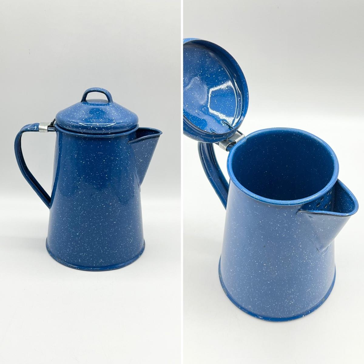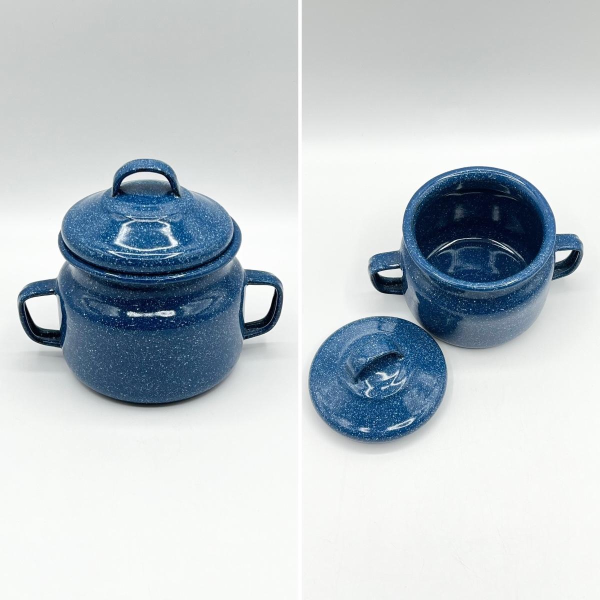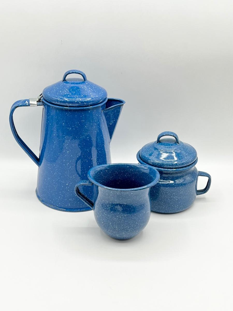 Three (3) Piece Blue Speckled Enameled Tea Set