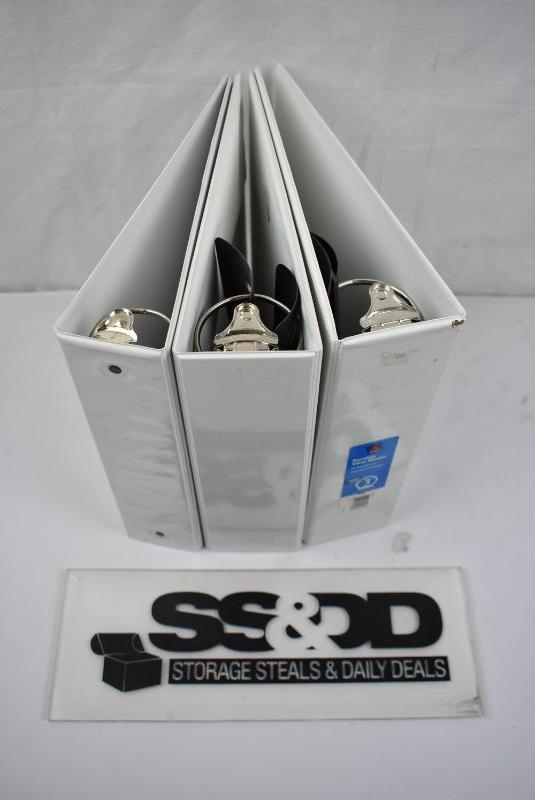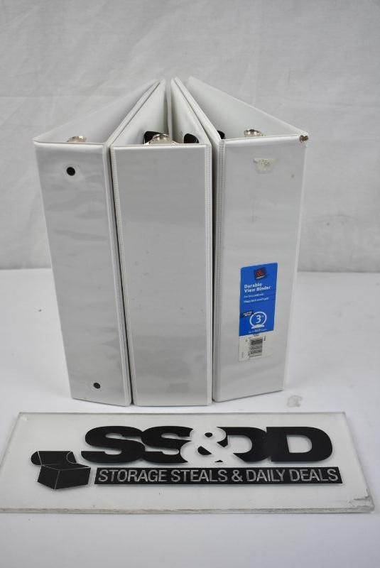 Three 3-Ring Binders, White. One 2.5" & Two 3"