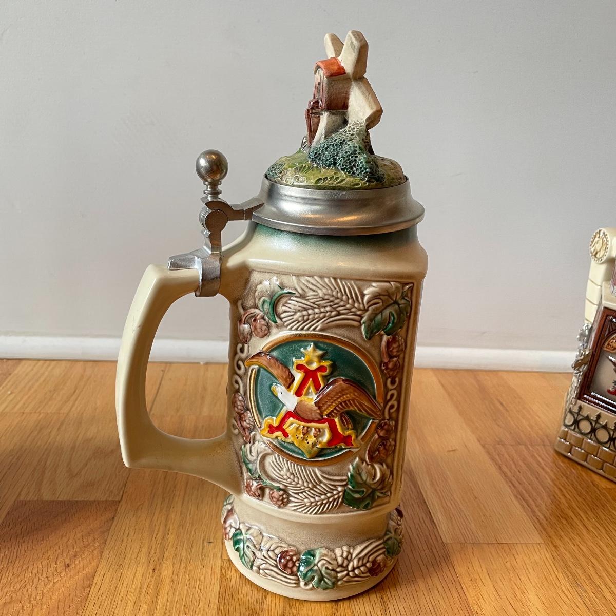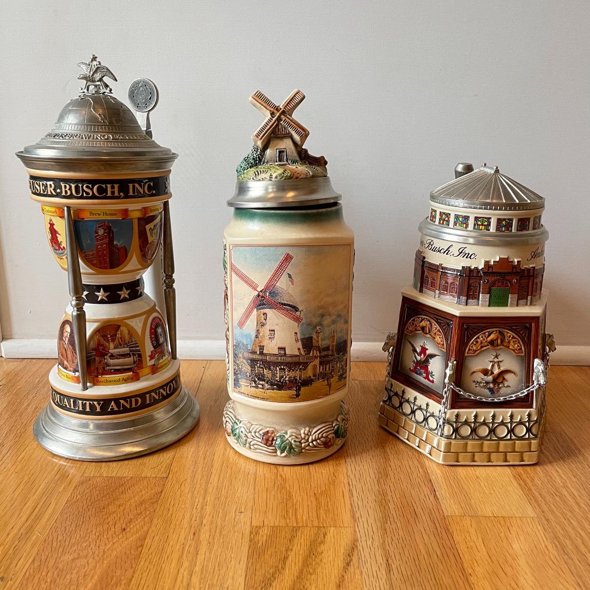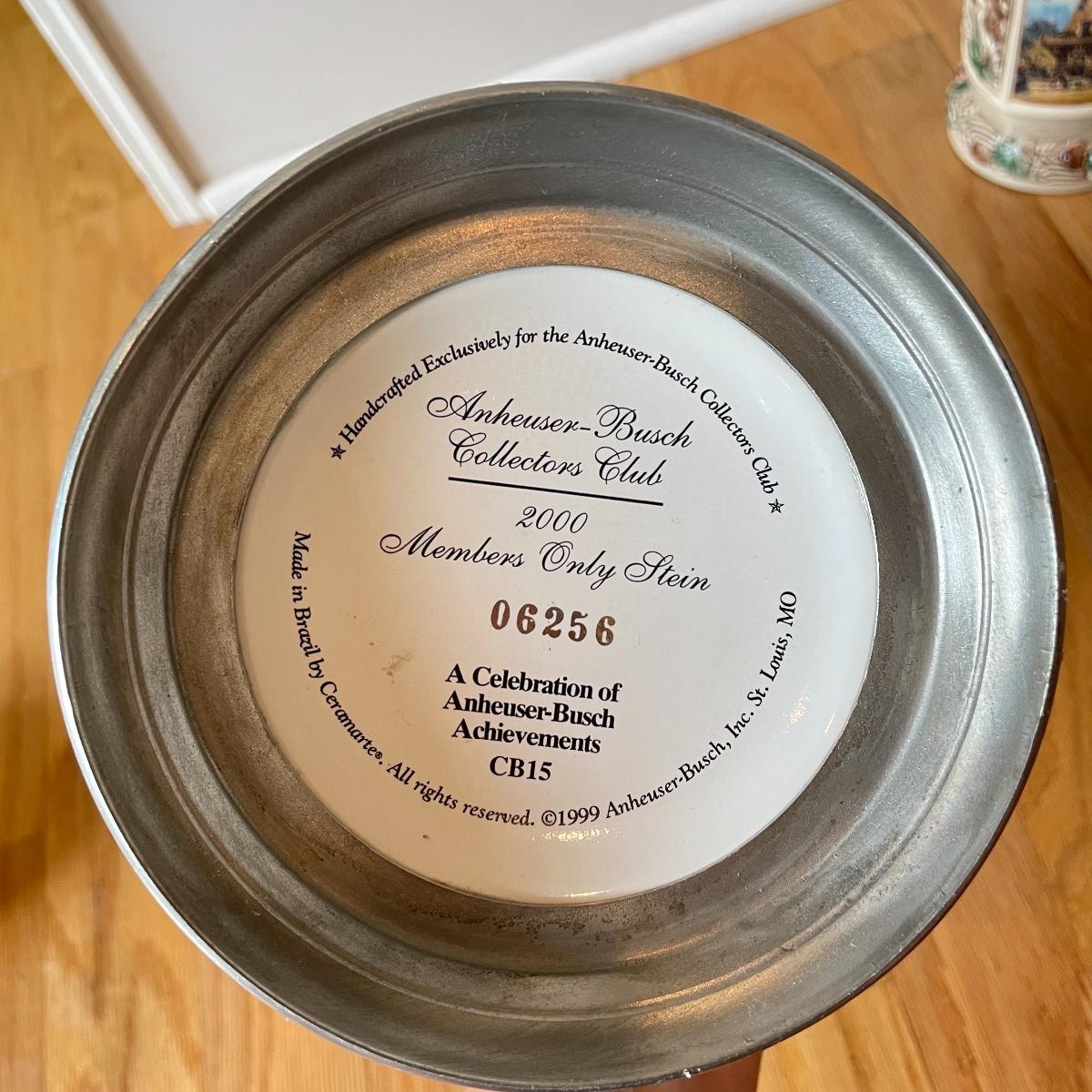 Three Anheuser-Busch Collectors Club Members Only Steins dating 1998-2000. The 1998 stein is 10.75”, 1999 stein is 9”, the 2000 stein is 11”. All three are complete with COAs. Shipping available.