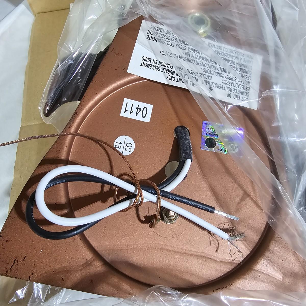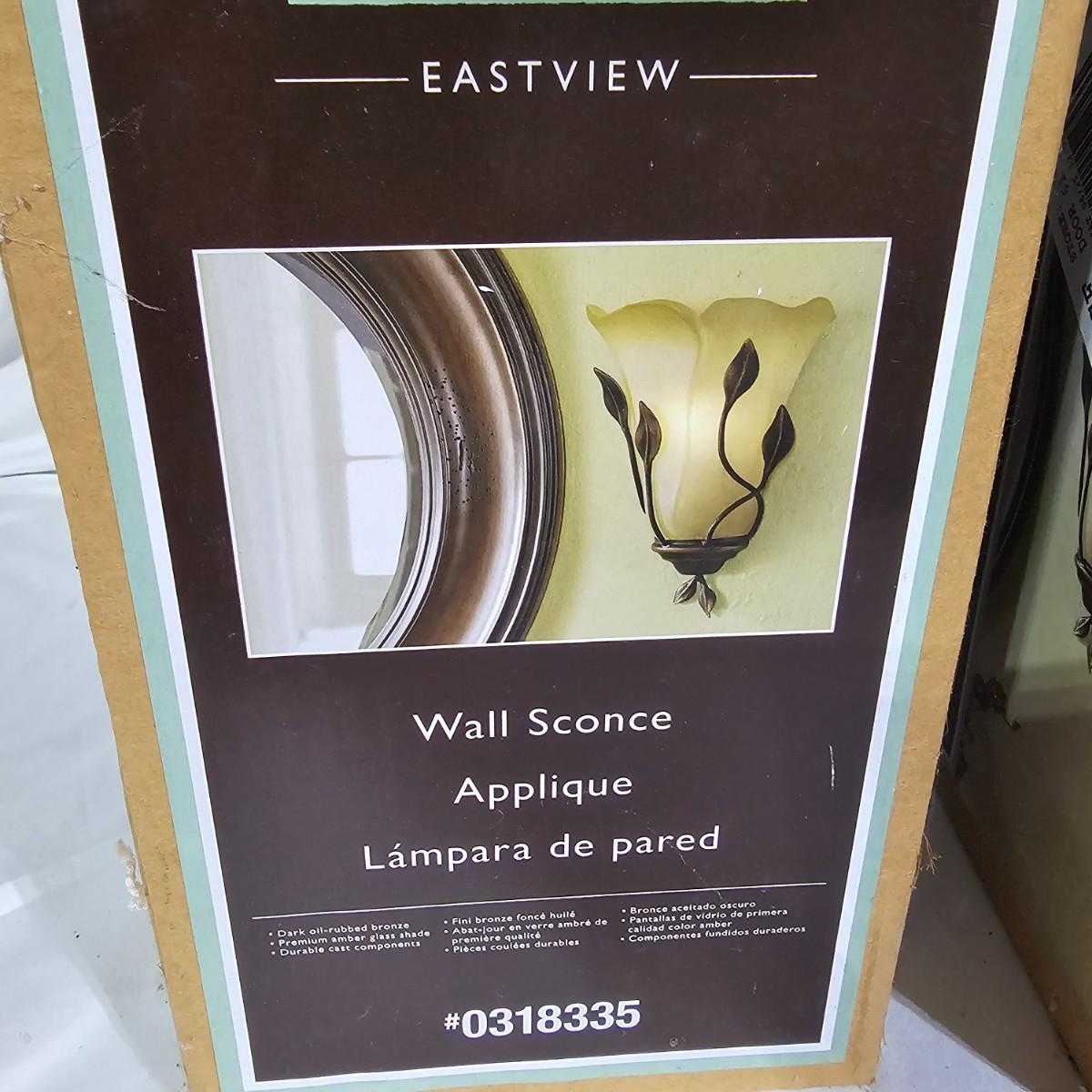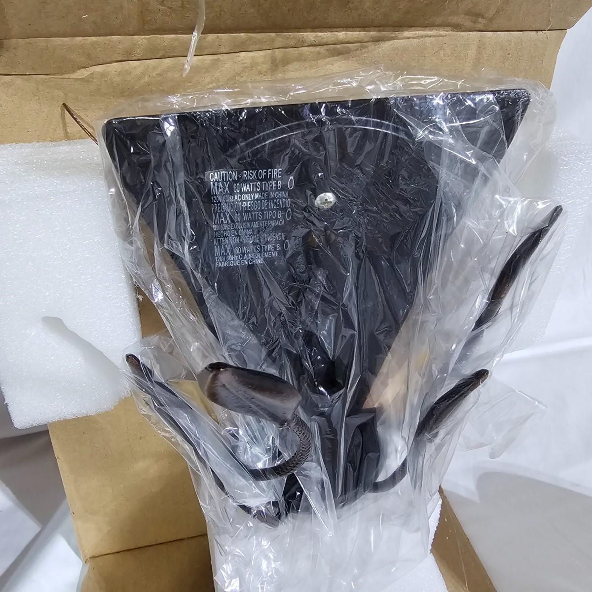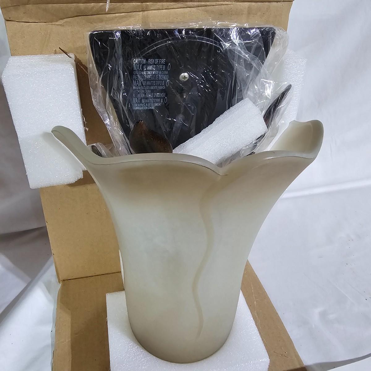 A trio of NIB electric wall sconces by Allen & Roth. Lights have tulip shaped frosted glass shade and petal-like metal base support. Designed to be hard-wired in location. Sconces measure 8" x 4.5" x 11.75"H. See photos for details. Untested. Shipping available.
