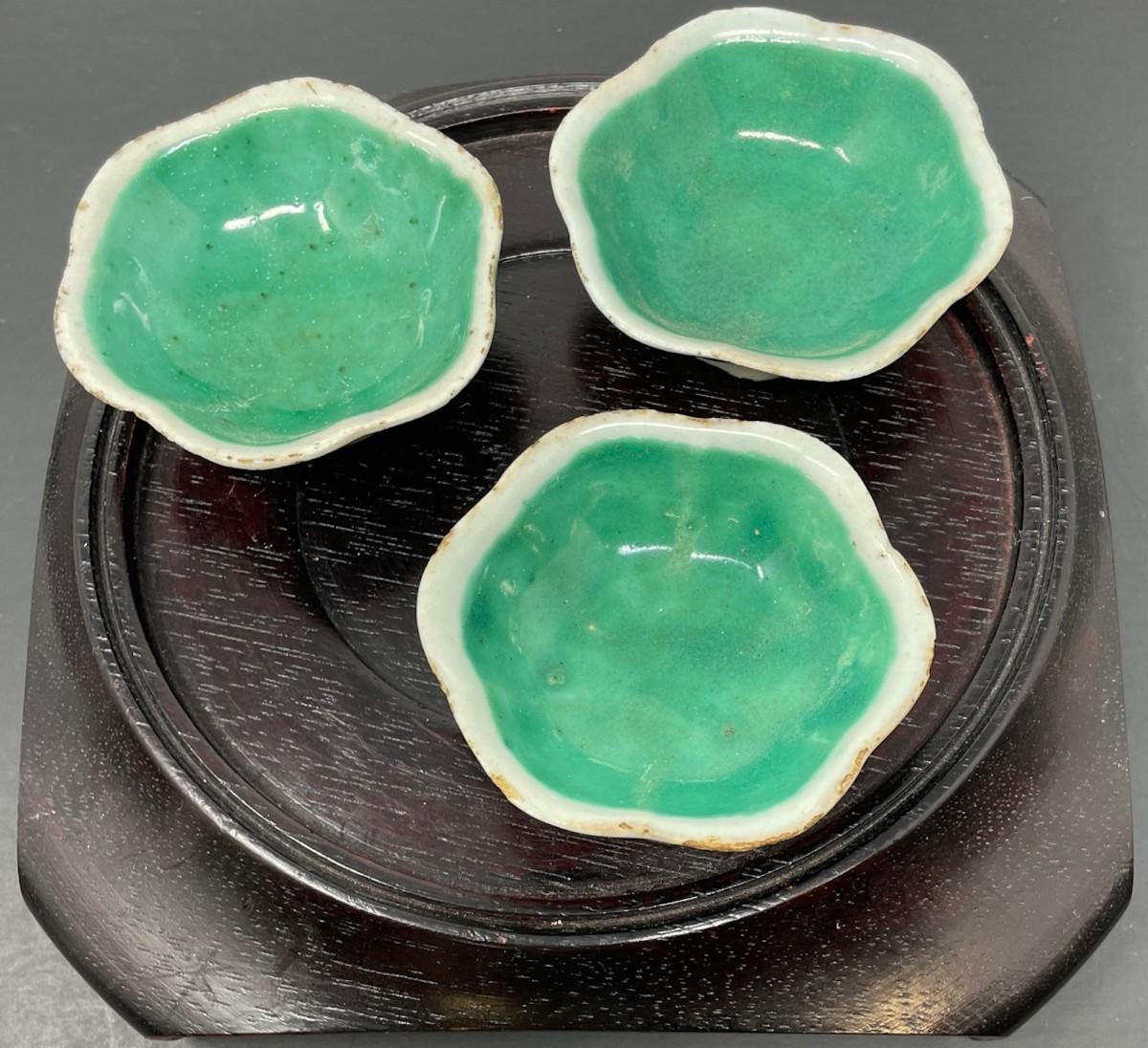 Description: Three Antique Chinese dish bowl Qing Dynasty era Measurement approximate: 2.9"w x 1"h (each); Material: Porcelain
