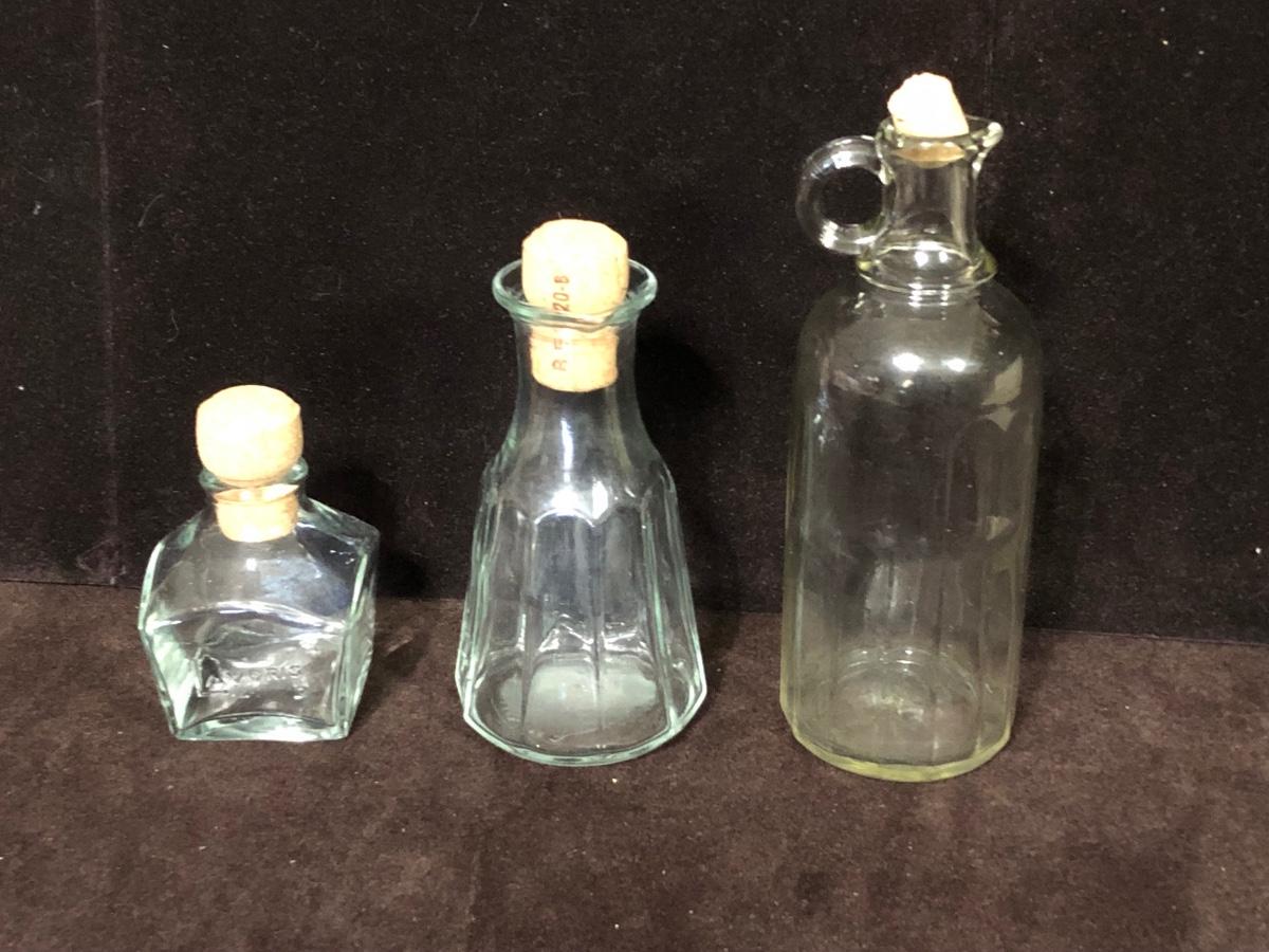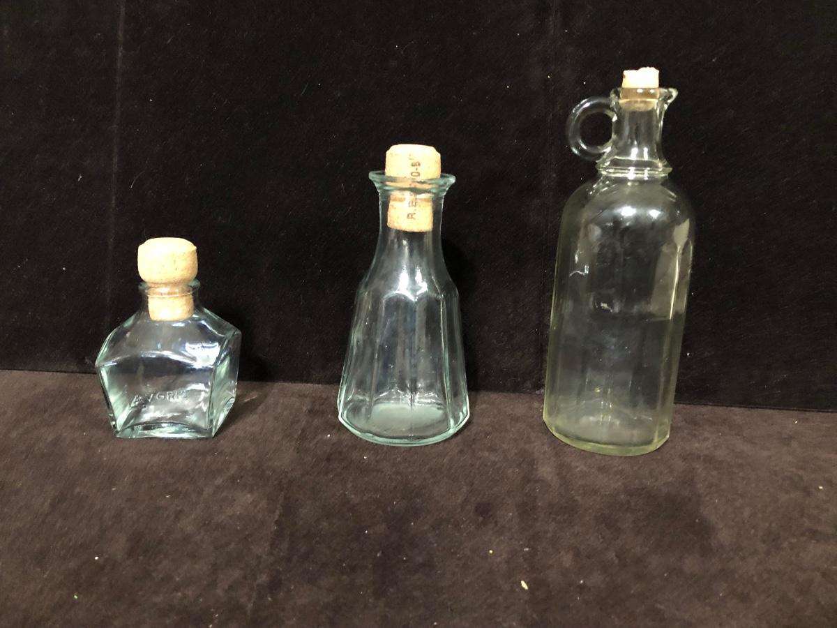THREE ANTIQUE CLEAR GLASS BOTTLES
