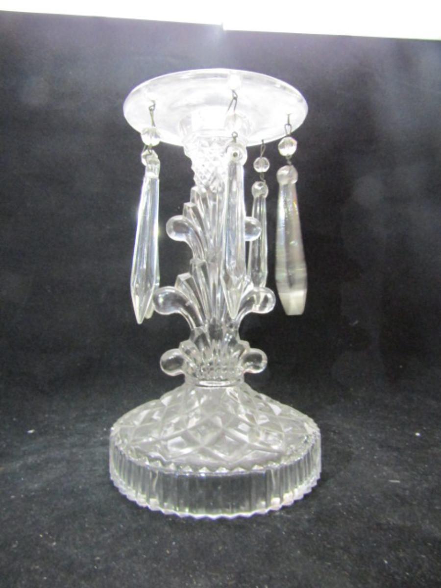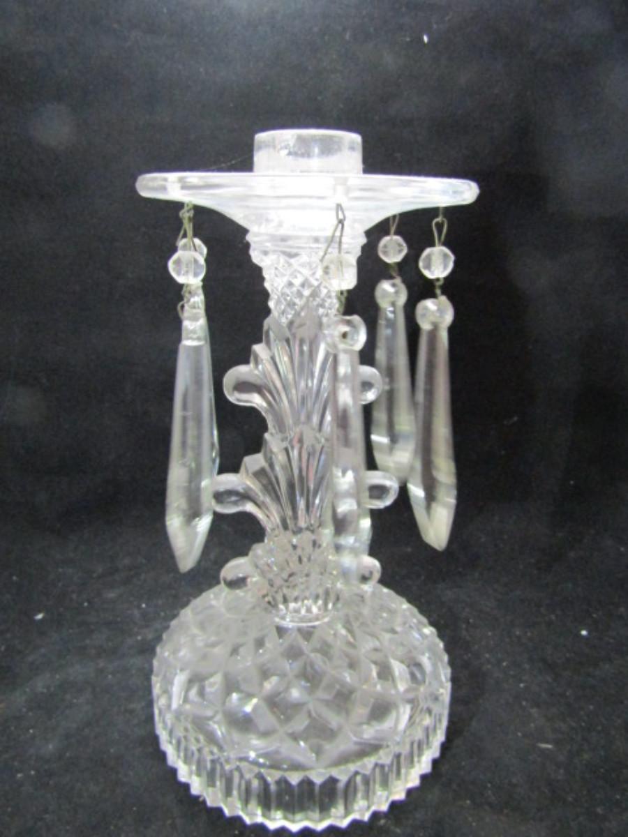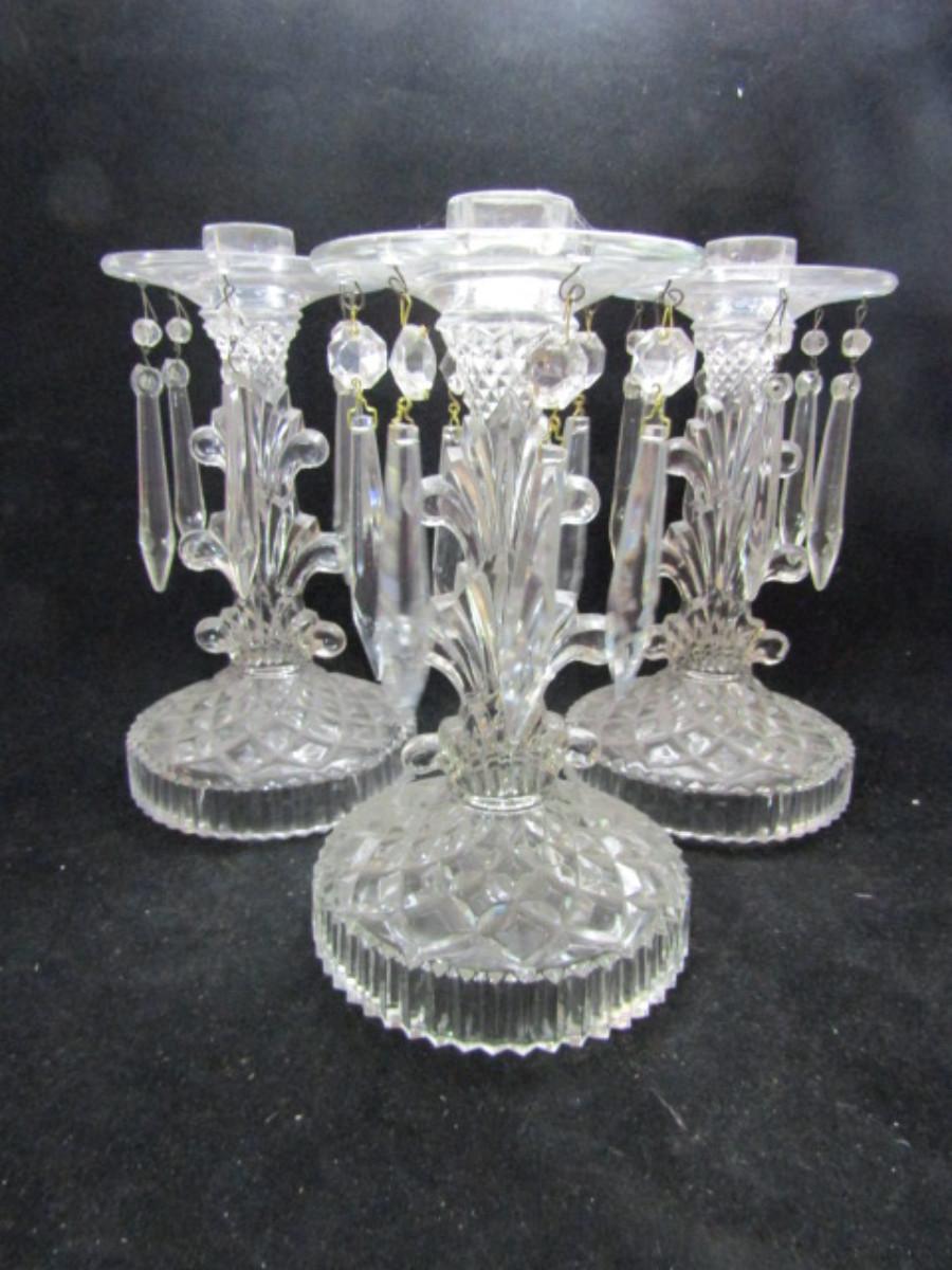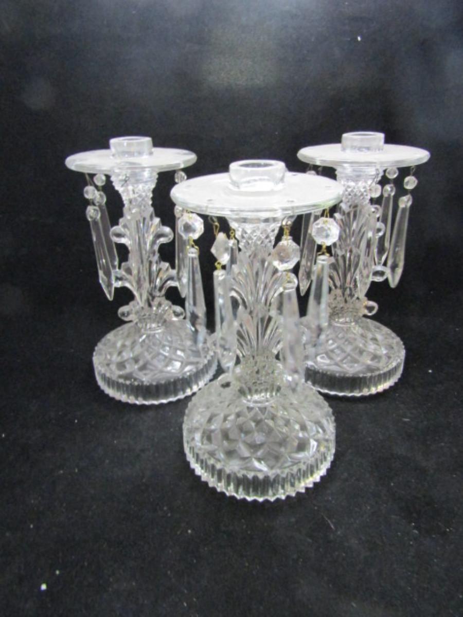 Three Art Deco Style Candle Holders with Hanging Crystal Accents (#390)
