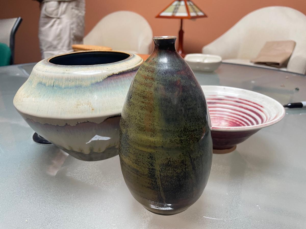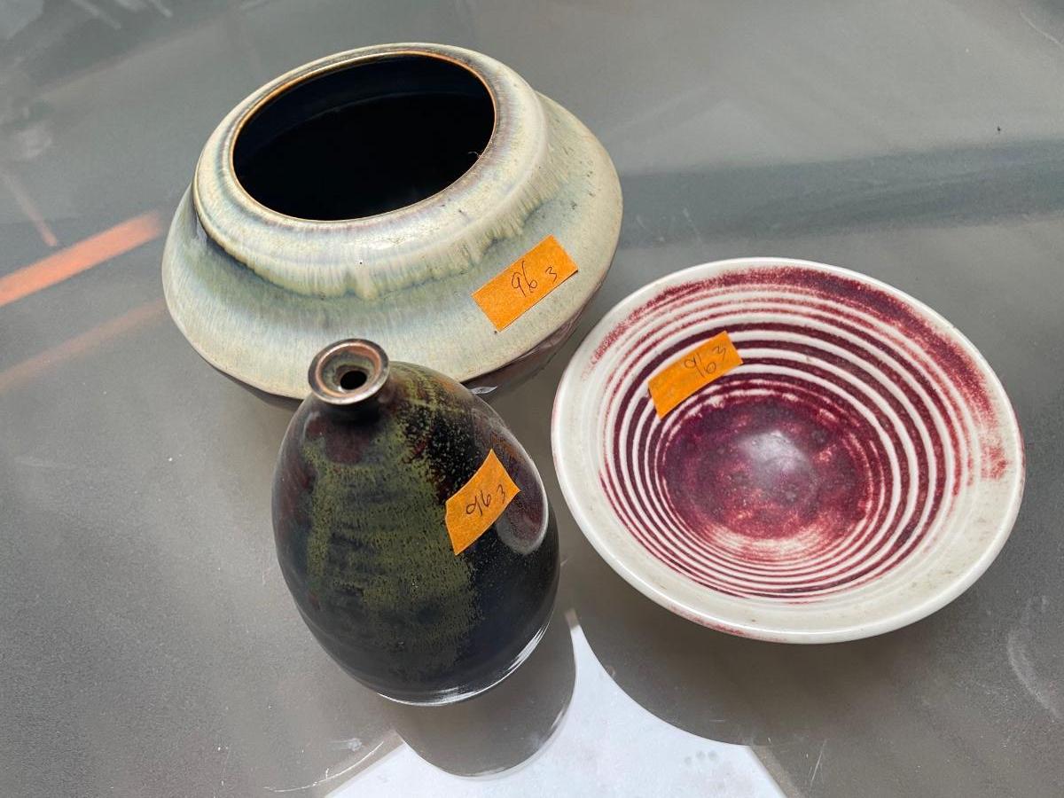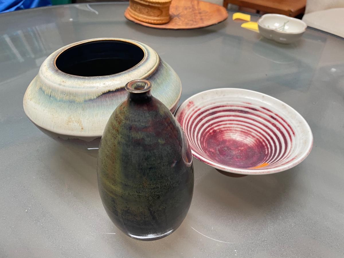 Three Art POTTERY PIECES - bowl, vase, & smaller vase