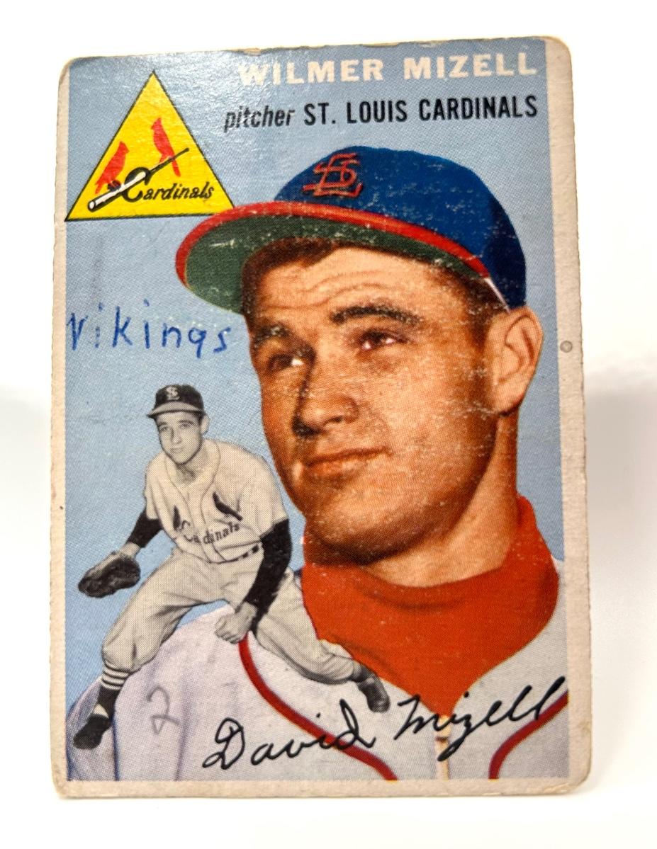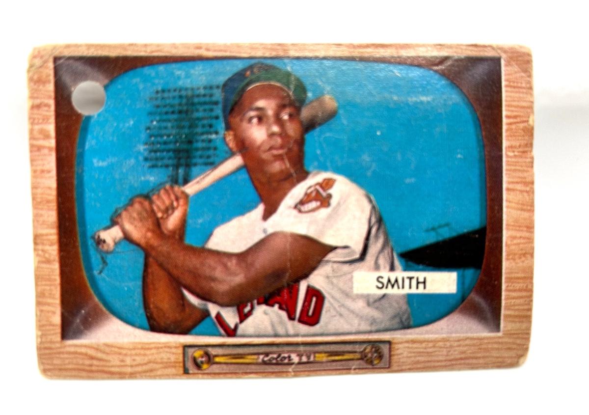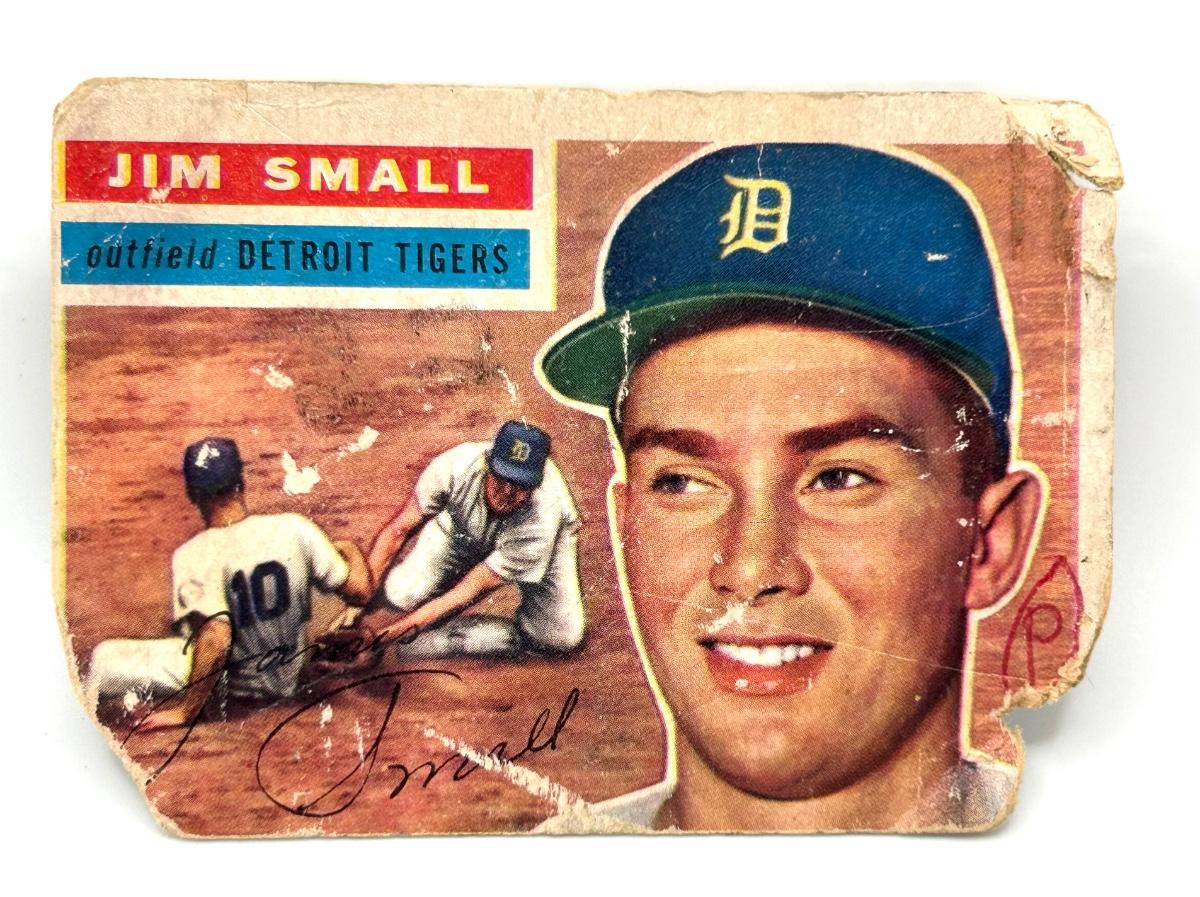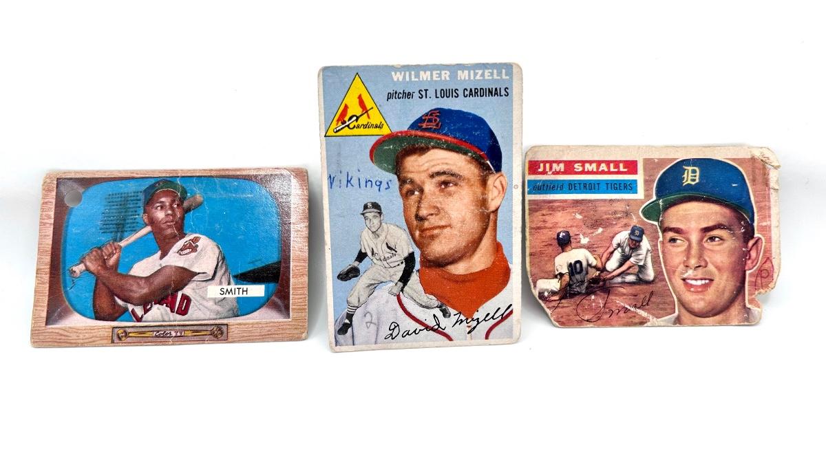 Lot includes includes 1954 Wilmer Mizell, 1956 Al Smith, and 1955 Jim Small cards. The cards are not in very good condition. Some have corners missing one has a hole punched in the corner and one has writing on it.