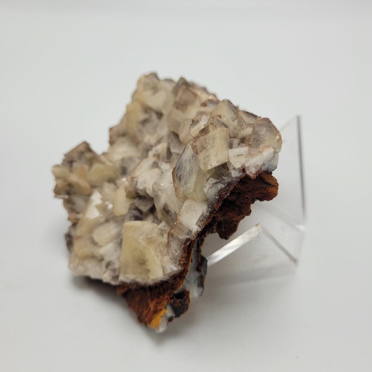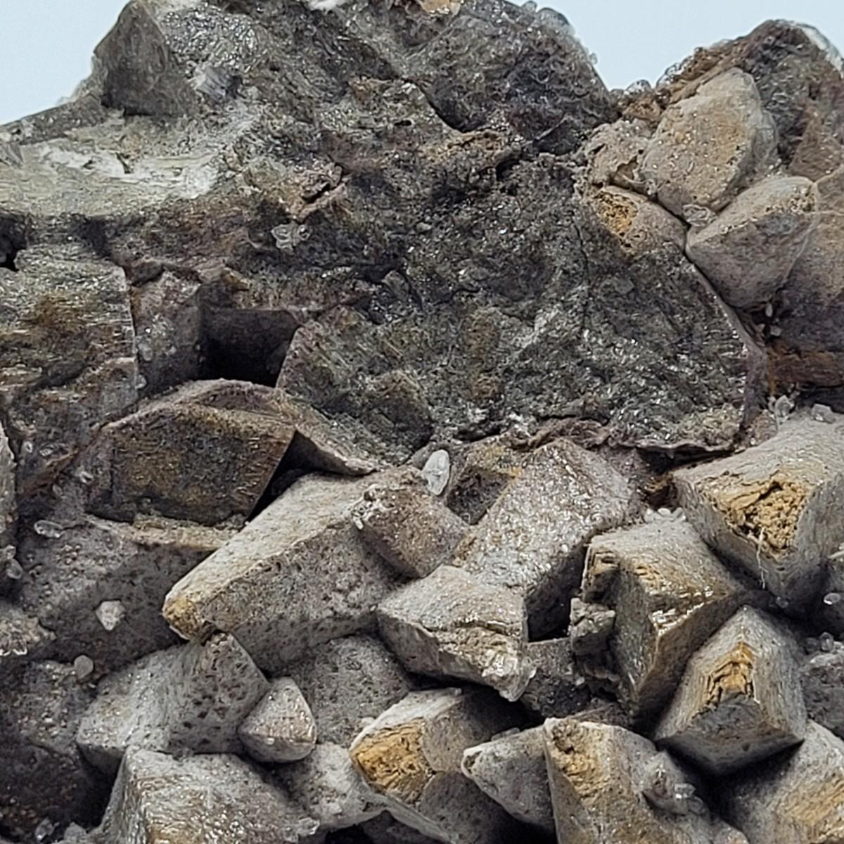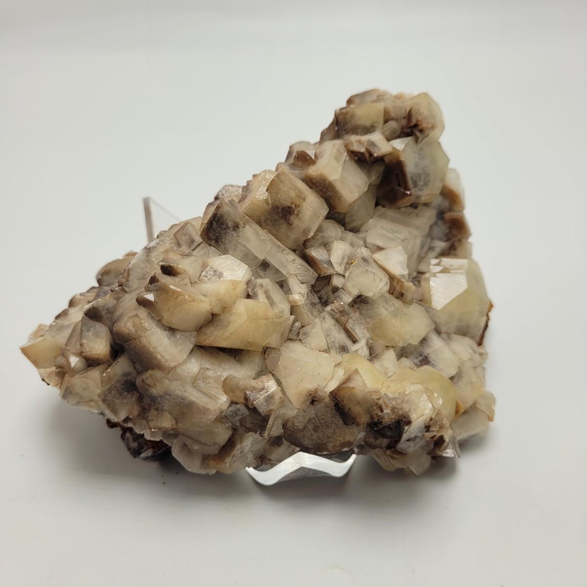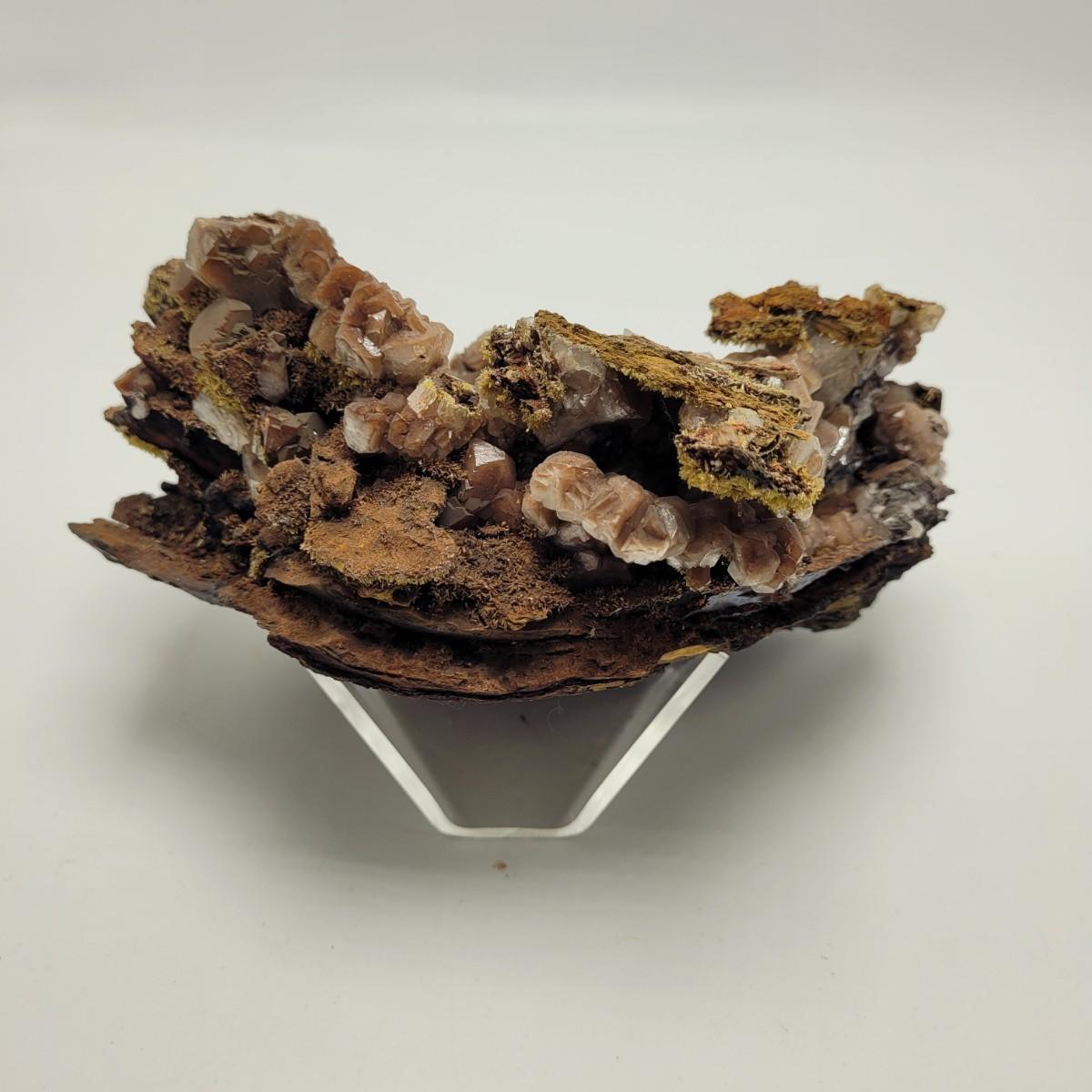 This lot includes what appears to be three unique pieces of calcite. The largest rock measures 7" x 4" x 4.5"H and has patches of green micro crystals. All three rocks appear to be a different variety of calcite, but likely contain other minerals such as tourmaline and mica. All rocks have a clear plastic display stand. See photos for more detail on individual items.