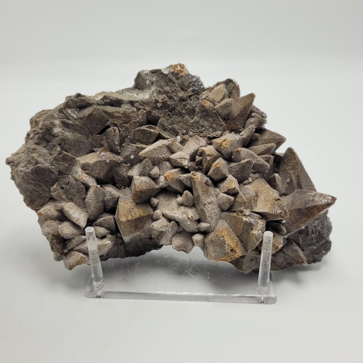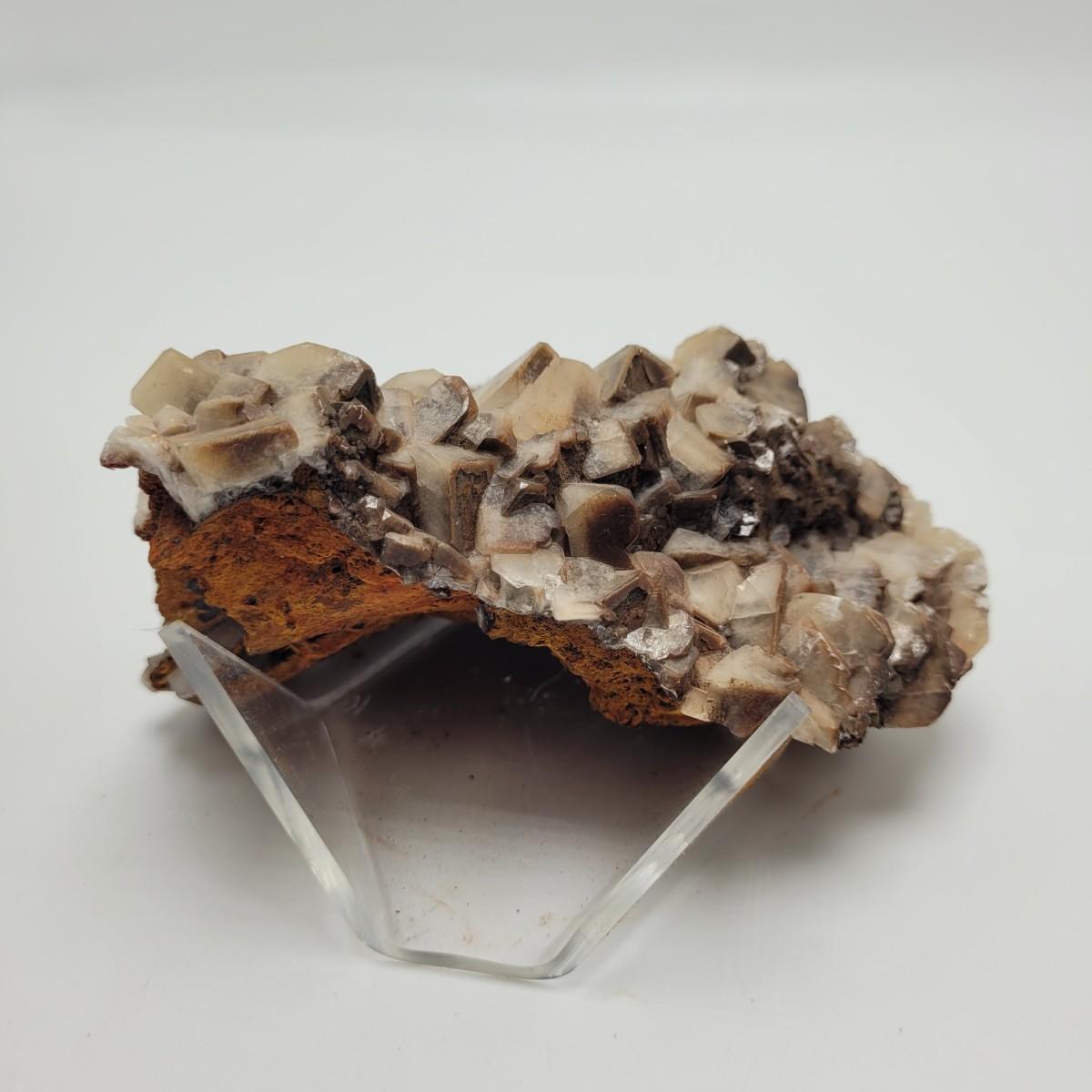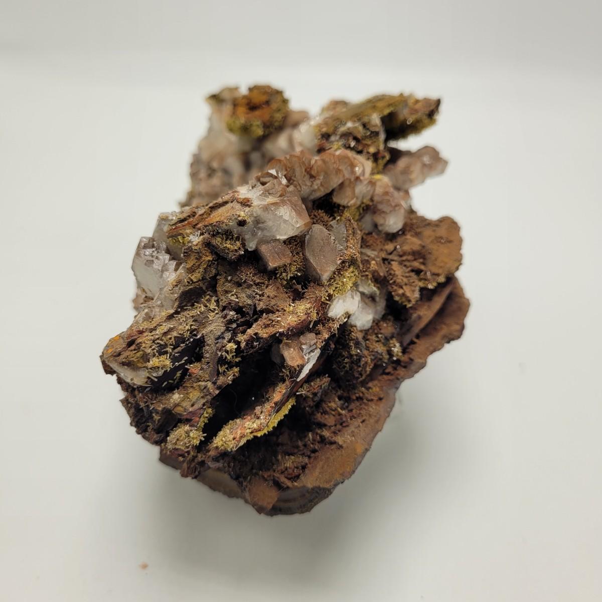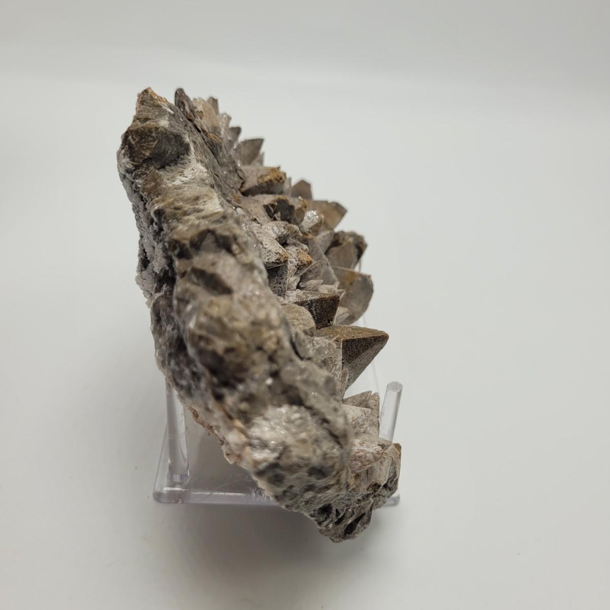 This lot includes what appears to be three unique pieces of calcite. The largest rock measures 7" x 4" x 4.5"H and has patches of green micro crystals. All three rocks appear to be a different variety of calcite, but likely contain other minerals such as tourmaline and mica. All rocks have a clear plastic display stand. See photos for more detail on individual items.