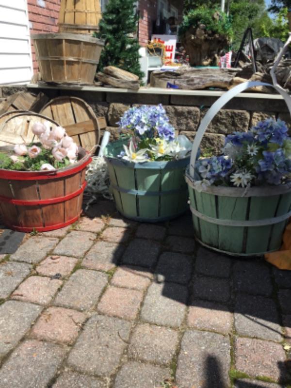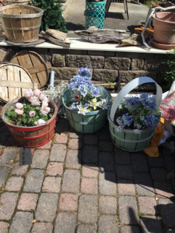Three baskets of silk flowers lot 1242